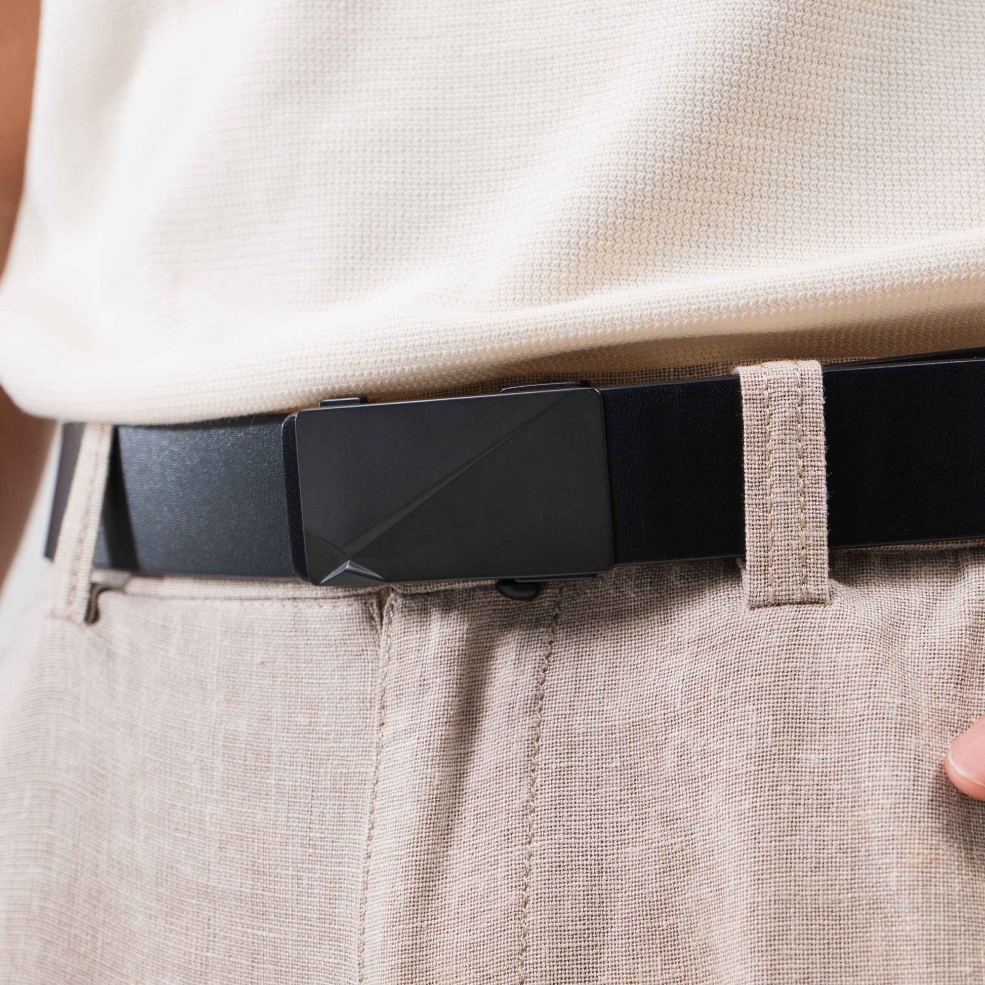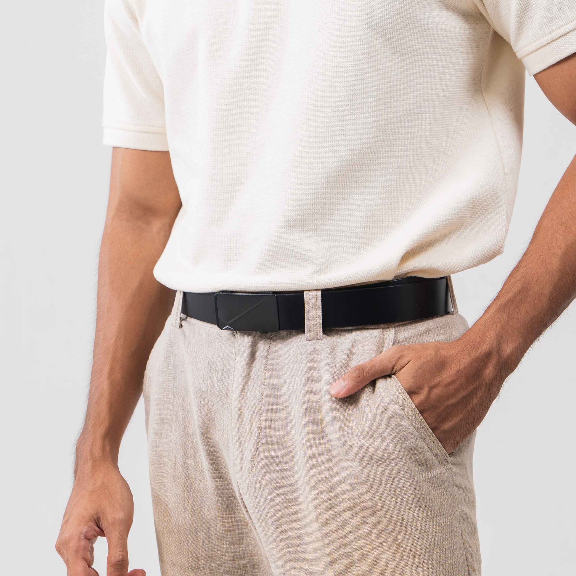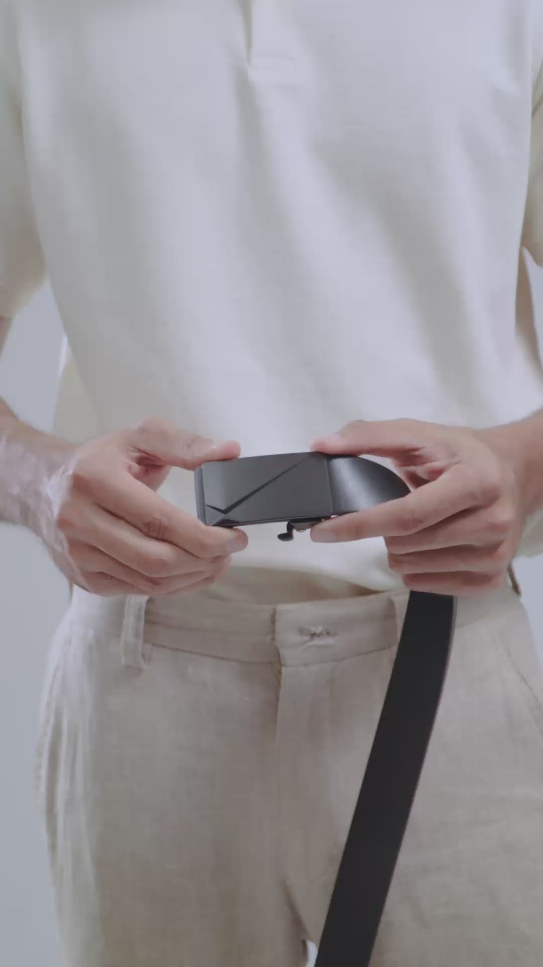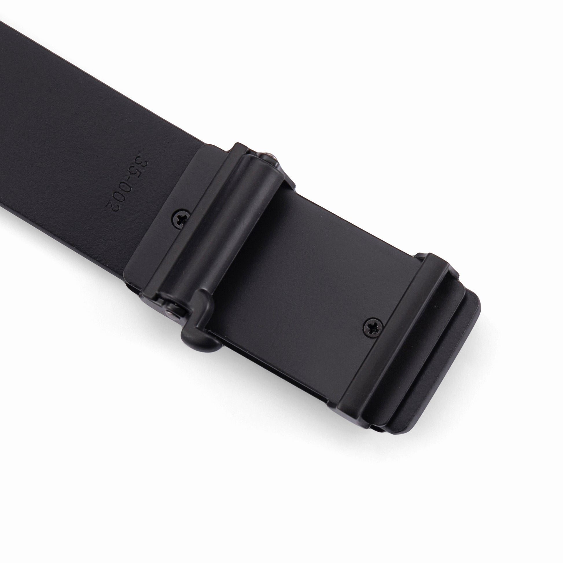 Terbuat dari bahan besi dengan finishing metalik yang membentuk kesan modern. Desain buckle bentuk padat dan ringan, proses penguncian yang mudah. Memiliki material berbahan genuine leather. Sabuk ini merupakan aksesoris penting yang tidak hanya berfungsi praktis tetapi juga berkontribusi pada penampilan keseluruhan.