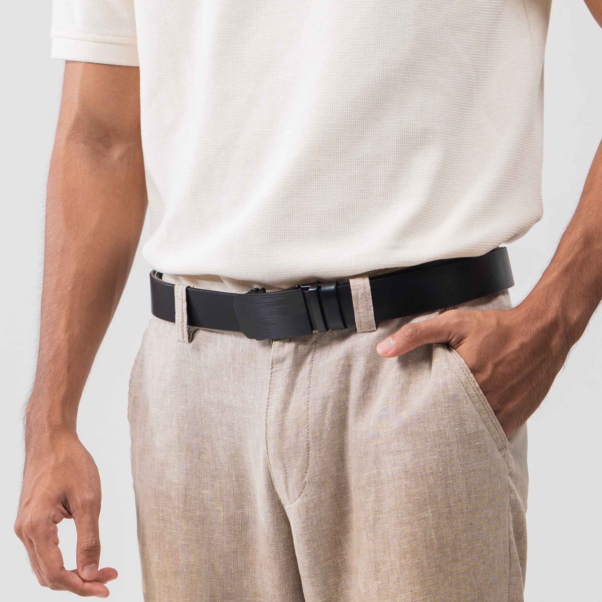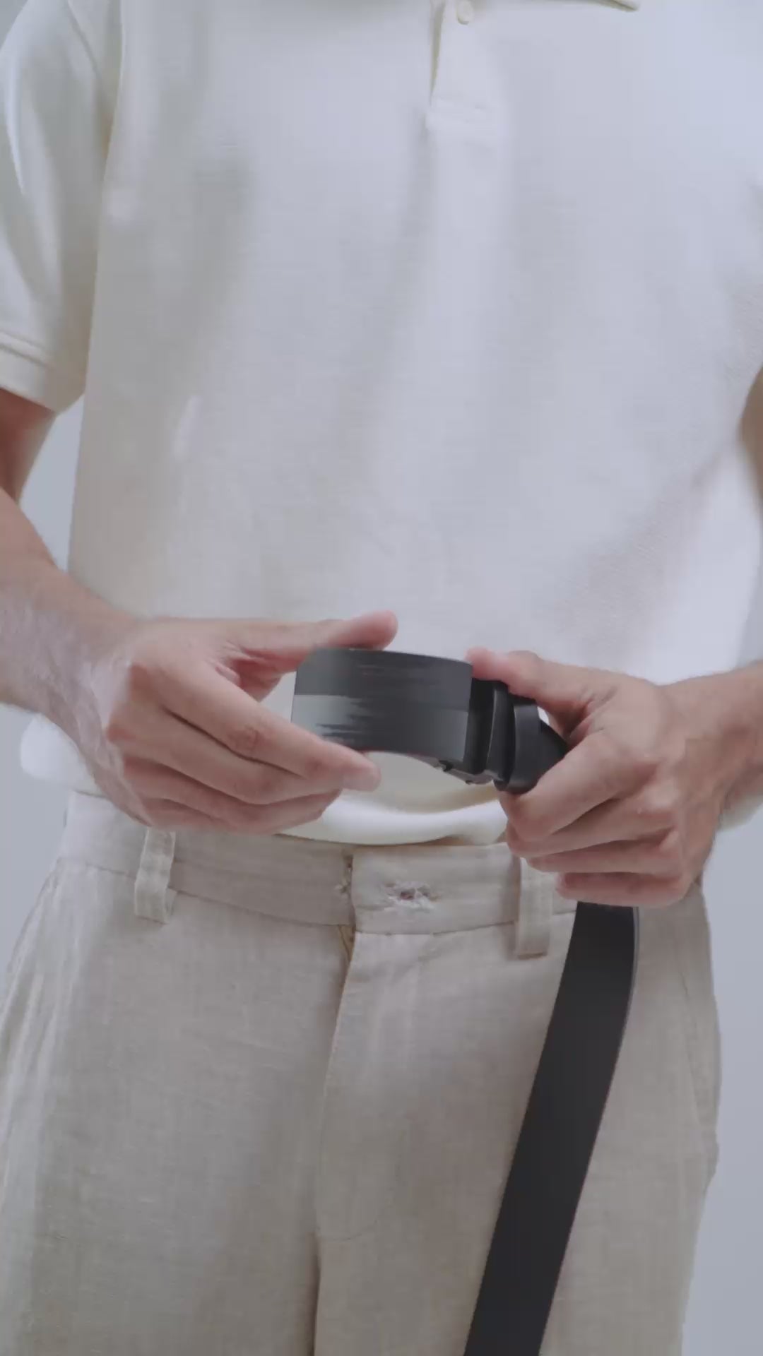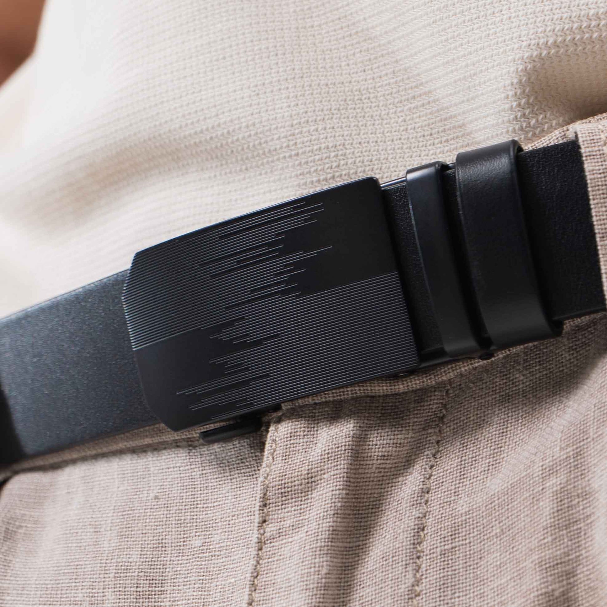 Terbuat dari bahan besi dengan finishing metalik yang membentuk kesan modern. Desain buckle bentuk padat, bermotif dan ringan, memungkinkan proses penguncian yang mudah. Memiliki material berbahan genuine leather. Sabuk ini merupakan aksesoris penting yang tidak hanya berfungsi praktis tetapi juga berkontribusi pada penampilan keseluruhan.