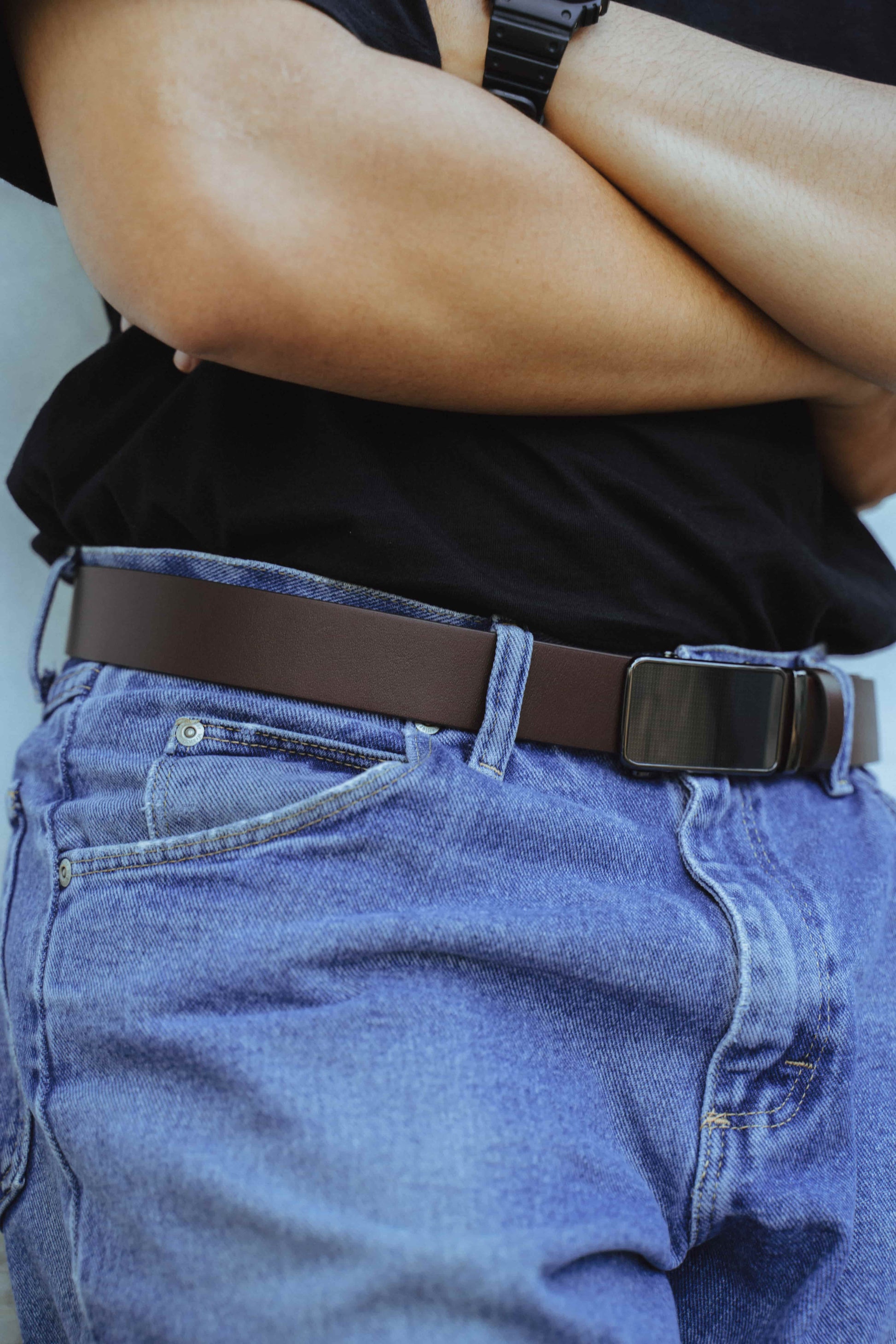 Terbuat dari bahan besi dengan finishing metalik yang membentuk kesan modern. Desain buckle padet dan ringan. Proses penguncian yang mudah. Memiliki material berbahan genuine leather bertekstur. Sabuk ini merupakan aksesoris penting yang tidak hanya berfungsi praktis tetapi juga berkontribusi pada penampilan keseluruhan.