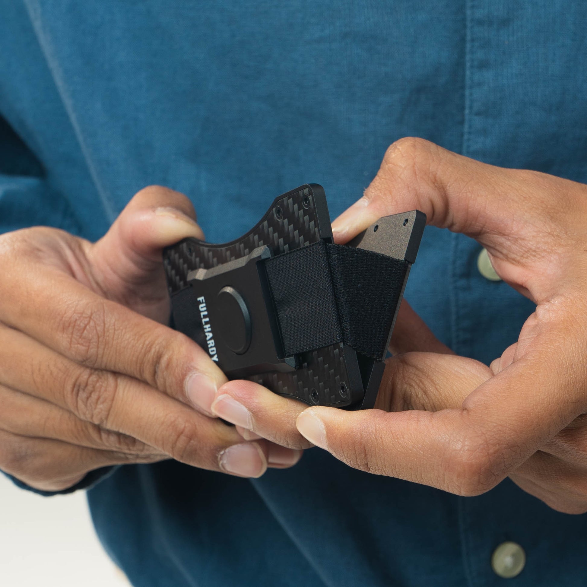 Khusus dompet kartu yang dapat menampung banyak kartu dalam satu genggam. Berbahan Carbon fiber yang ringan dan tahan lama. Tampilan depan memiliki pola serat carbon yang elegan. Dilengkapi dengan strap elastis hitam yang memberikan keamanan saat menyimpan kartu. Dompet ini sangat cocok untuk digunakan sehari-hari, baik untuk laki-laki maupun perempuan. Memudahkan penyimpanan dan pengambilan kartu dengan cepat dan efisien.
