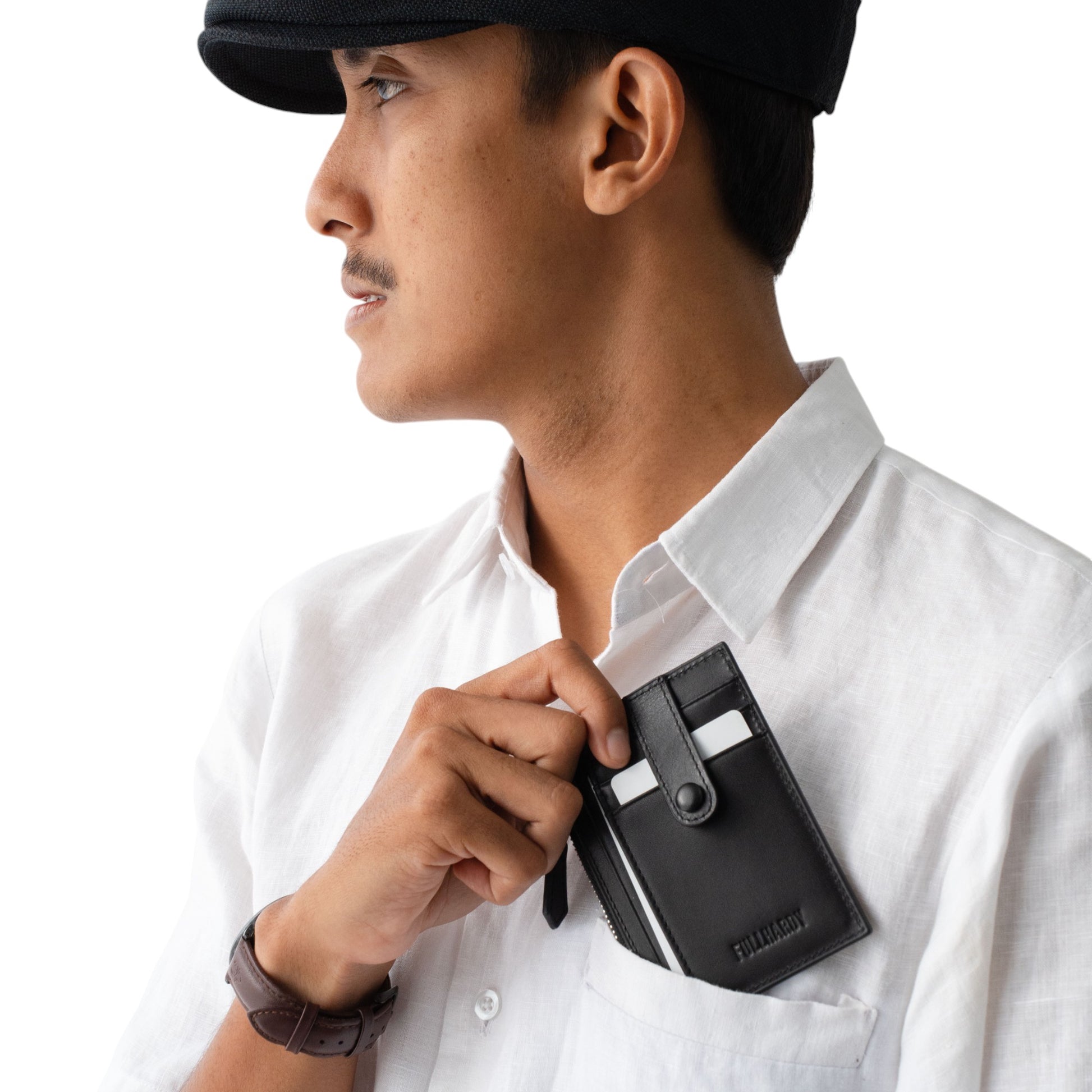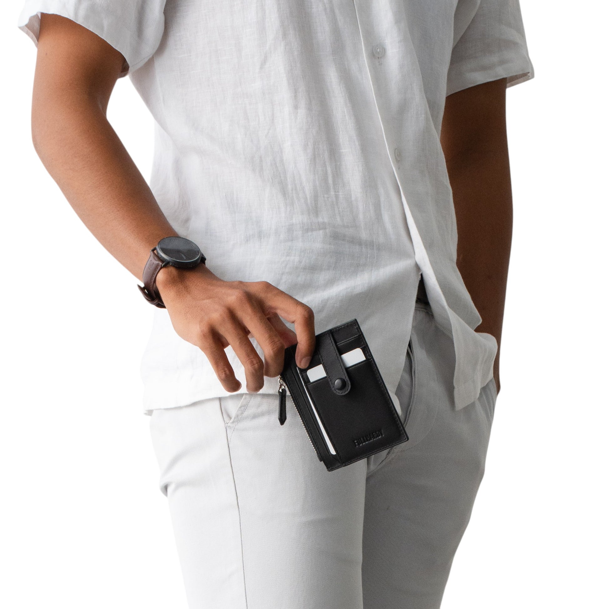 Permukaan halus dengan tampilan minimalis, tidak ada detail berlebihan yang mengganggu. Semua kompartemen dirancang agar mudah diakses, dengan organisasi yang mengutamakan kecepatan saat menggunakan kartu, uang koin, dan uang tunai. Memiliki teknologi penghalang RFID Radio Frequency Identification, yang membantu melindungi informasi pribadi anda dari pencurian data digital. Cocok untuk penggunaan sehari-hari, baik dalam kegiatan formal maupun kasual.