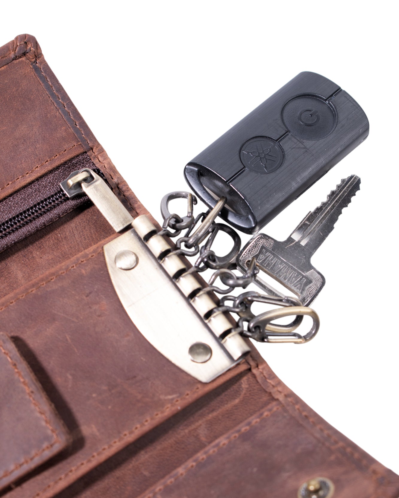 Permukaan halus dengan tampilan minimalis, tidak ada detail berlebihan yang mengganggu. Semua kompartemen dirancang agar mudah diakses, dengan organisasi yang mengutamakan kecepatan saat menggunakan kunci, surat kendaraan, uang tunai dan uang koin. Cocok untuk penggunaan sehari-hari.
