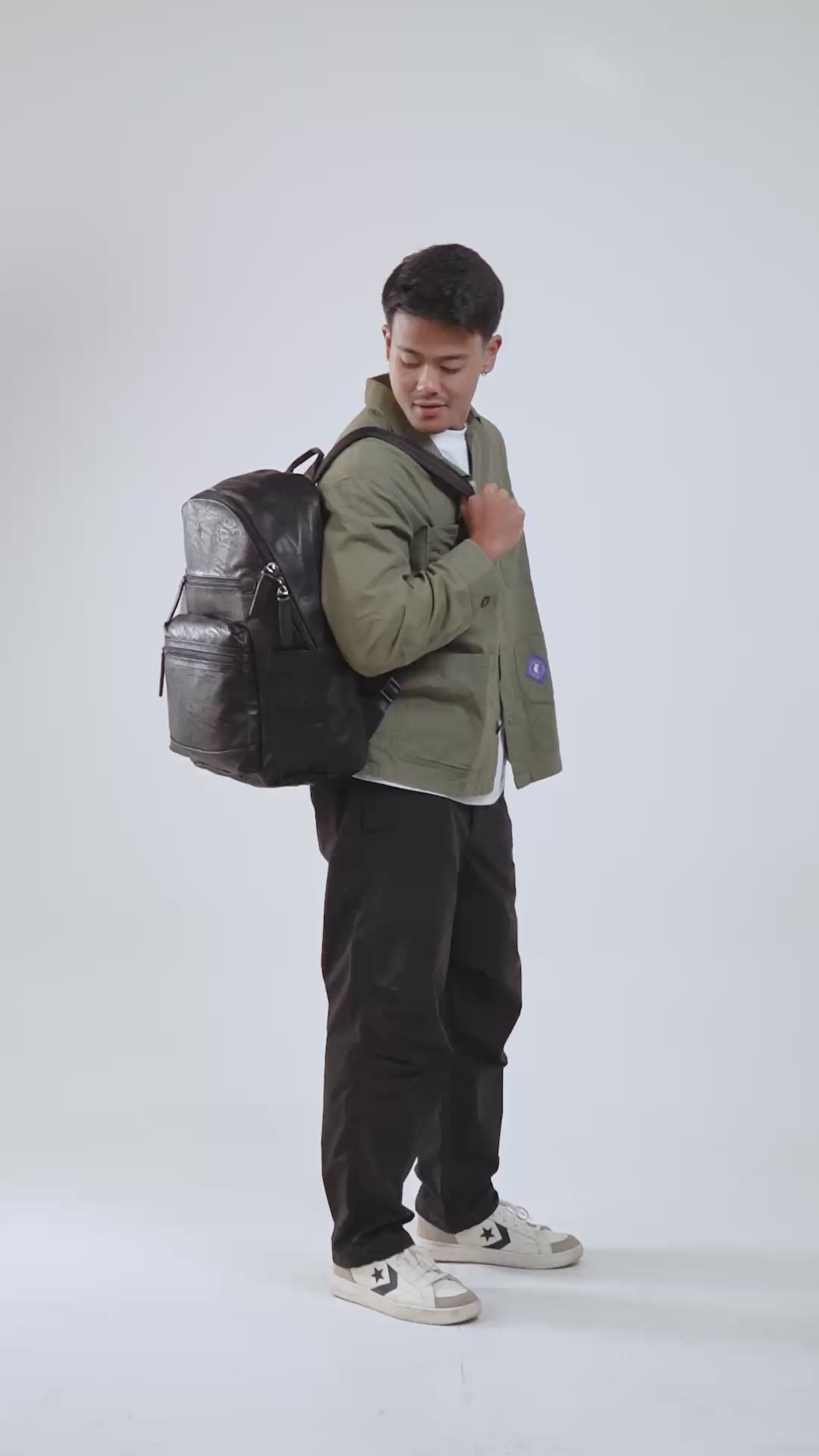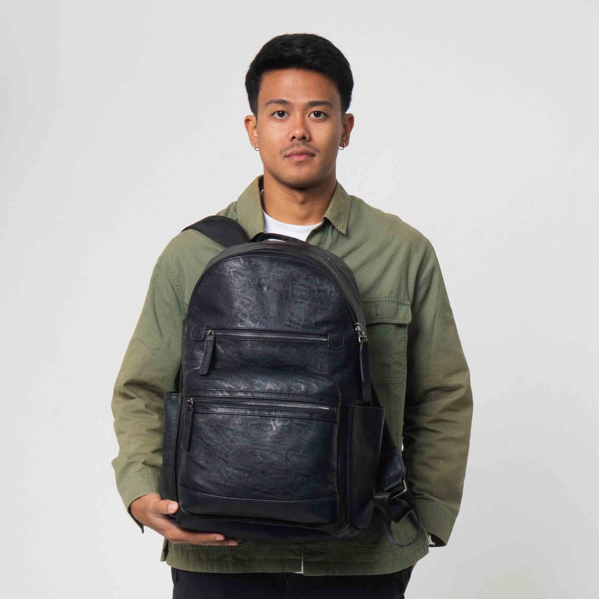 Desain ransel yang elegan dan modern. Terbuat dari bahan faux leather berkualitas memberikan tampilan yang stylish dan profesional. Memiliki kompartemen utama yang cukup luas. Bagian depan terdapat zipper memudahkan akses cepat untuk mengambil dan menyimpan barang. Ransel ini merupakan pilihan yang tepat bagi individu yang membutuhkan kombinasi antara fungsi dan gaya.