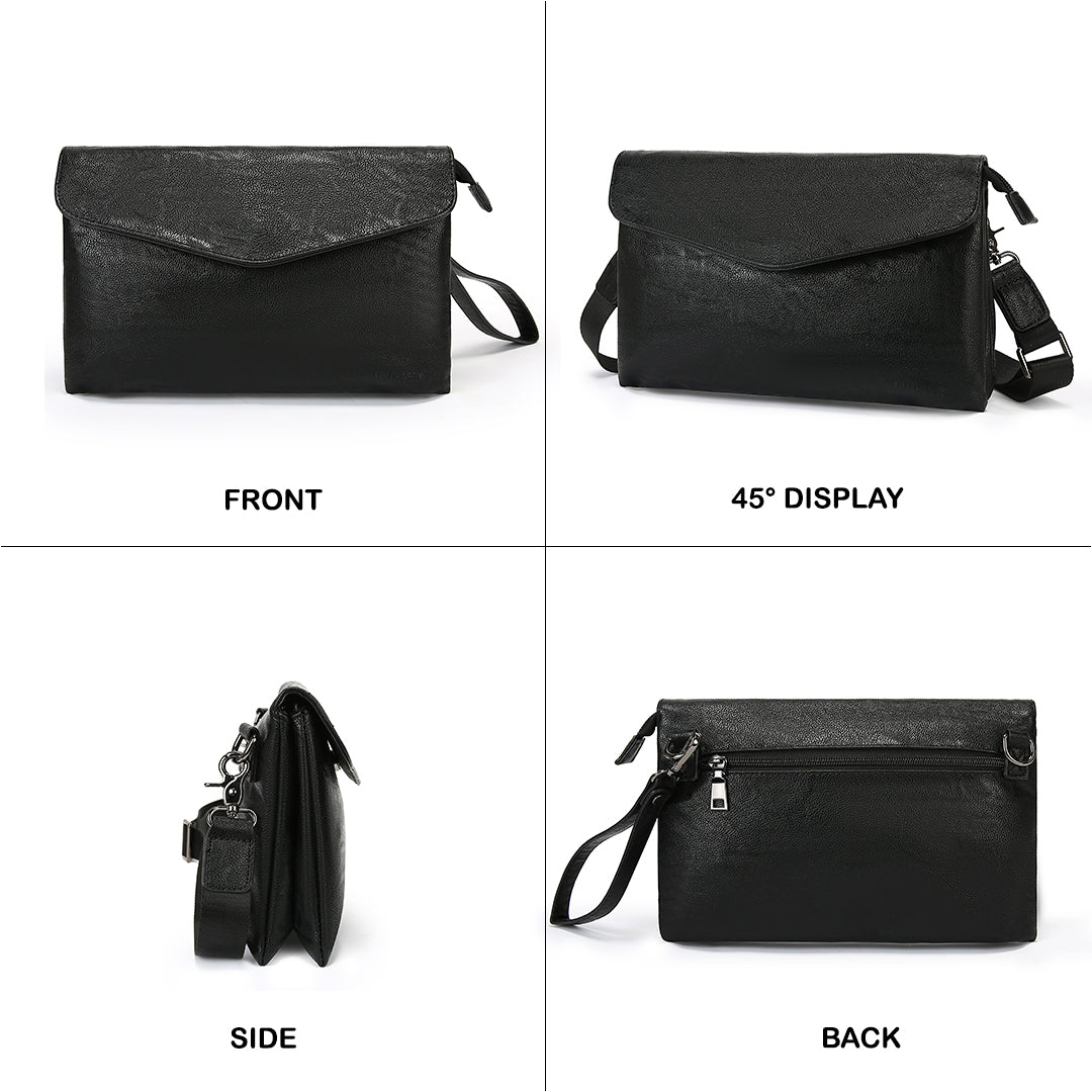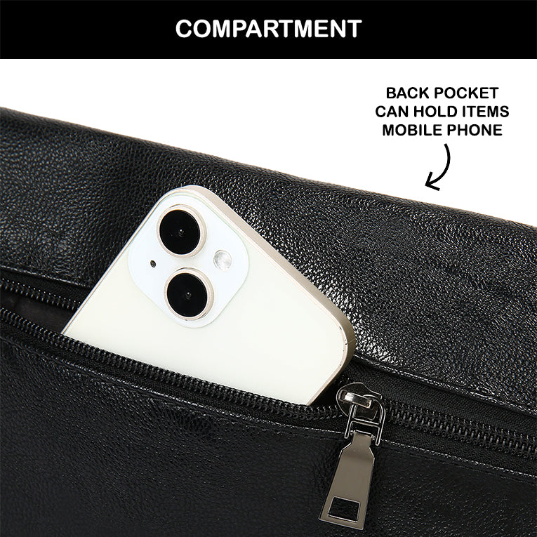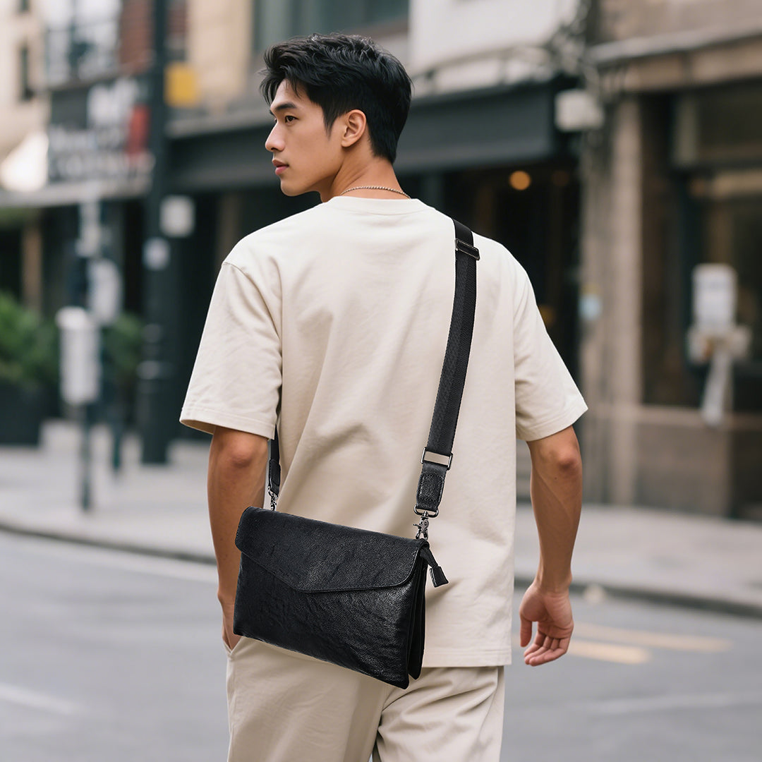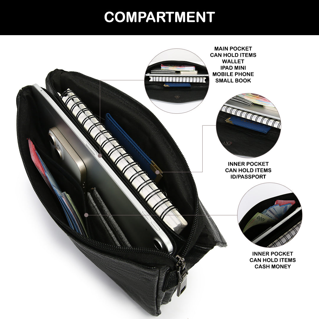 Desainnya yang rapi dan minimalis menjadikannya cocok untuk berbagai kesempatan, baik formal maupun kasual. Material berbahan faux leather yang tahan lama. Dapat digunakan sebagai tas genggam dan tas selempang, dengan tali yang dapat disesuaikan dan terdapat handle strap untuk kenyamanan pemakaian yang fleksibel. Ritsleting halus memastikan akses mudah ke kompartemen dengan sistem penutupan yang aman. Memiliki ruang yang cukup luas untuk menyimpan barang-barang penting.
