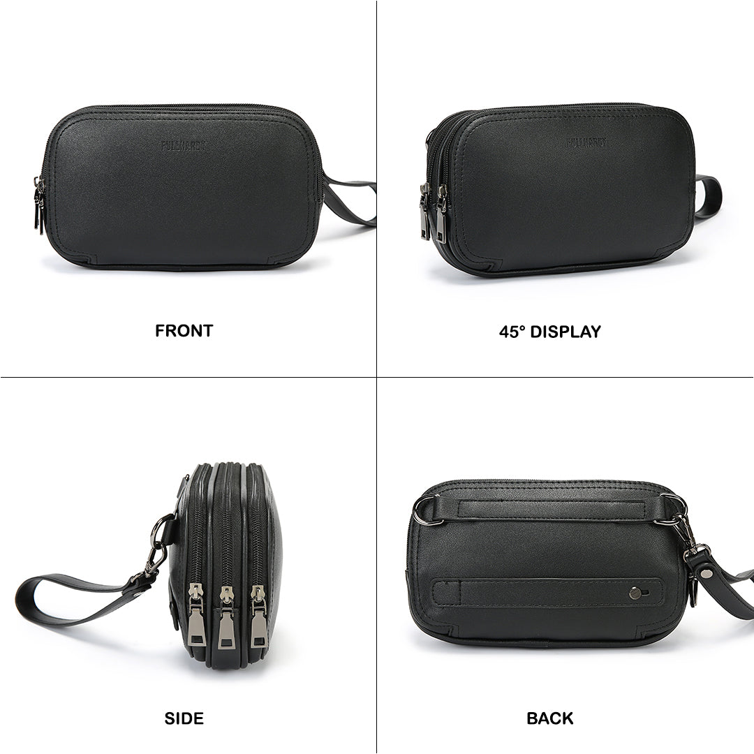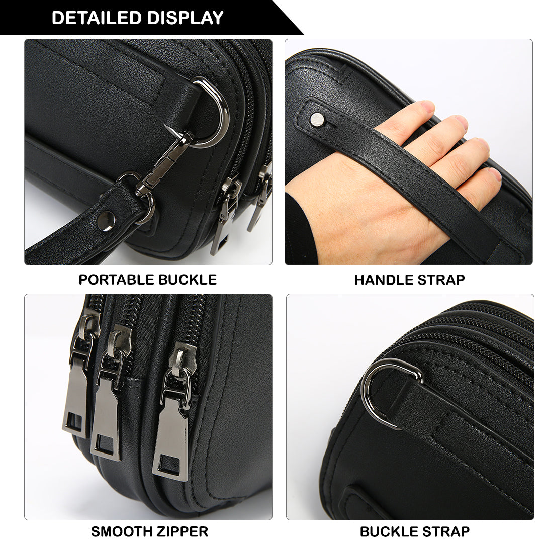 Exterior : 1 Zip Pocket, Handle Leather Strap