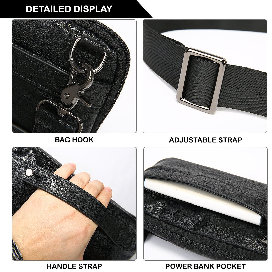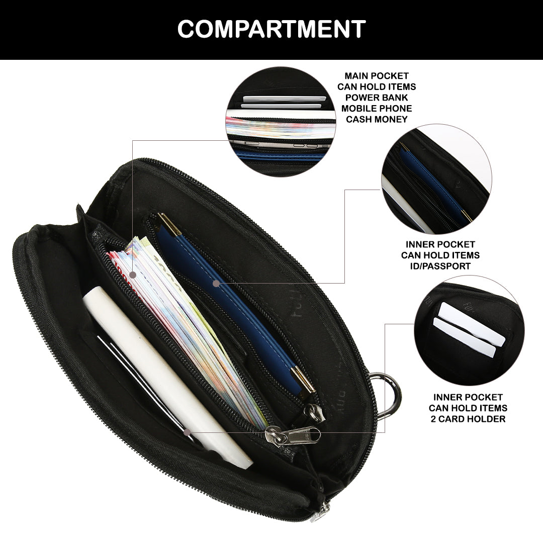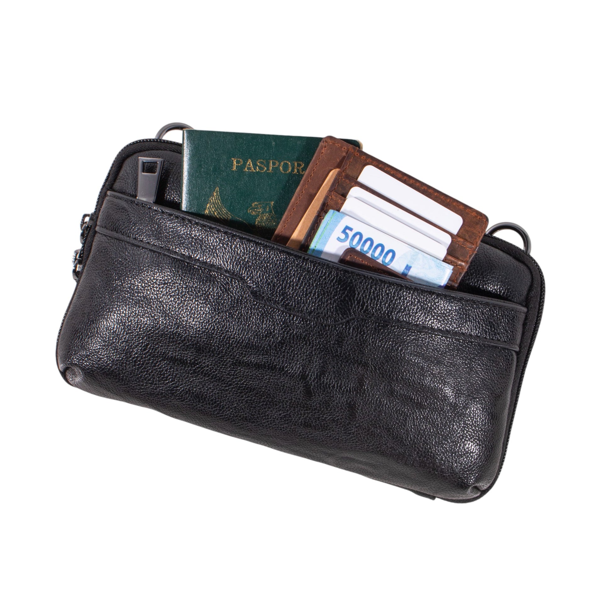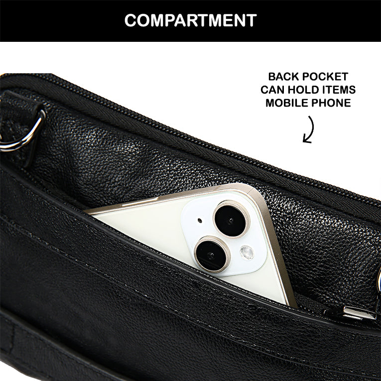 Desainnya yang rapi dan minimalis menjadikannya cocok untuk berbagai kesempatan, baik formal maupun kasual. Material berbahan faux leather yang tahan lama. Dapat digunakan sebagai tas genggam dan tas slempang, dengan tali yang dapat disesuaikan dan terdapat handle strap untuk kenyamanan pemakaian yang fleksibel. Ritsleting halus memastikan akses mudah ke kompartemen dengan sistem penutupan yang aman. Memiliki ruang yang cukup luas untuk menyimpan barang-barang penting.