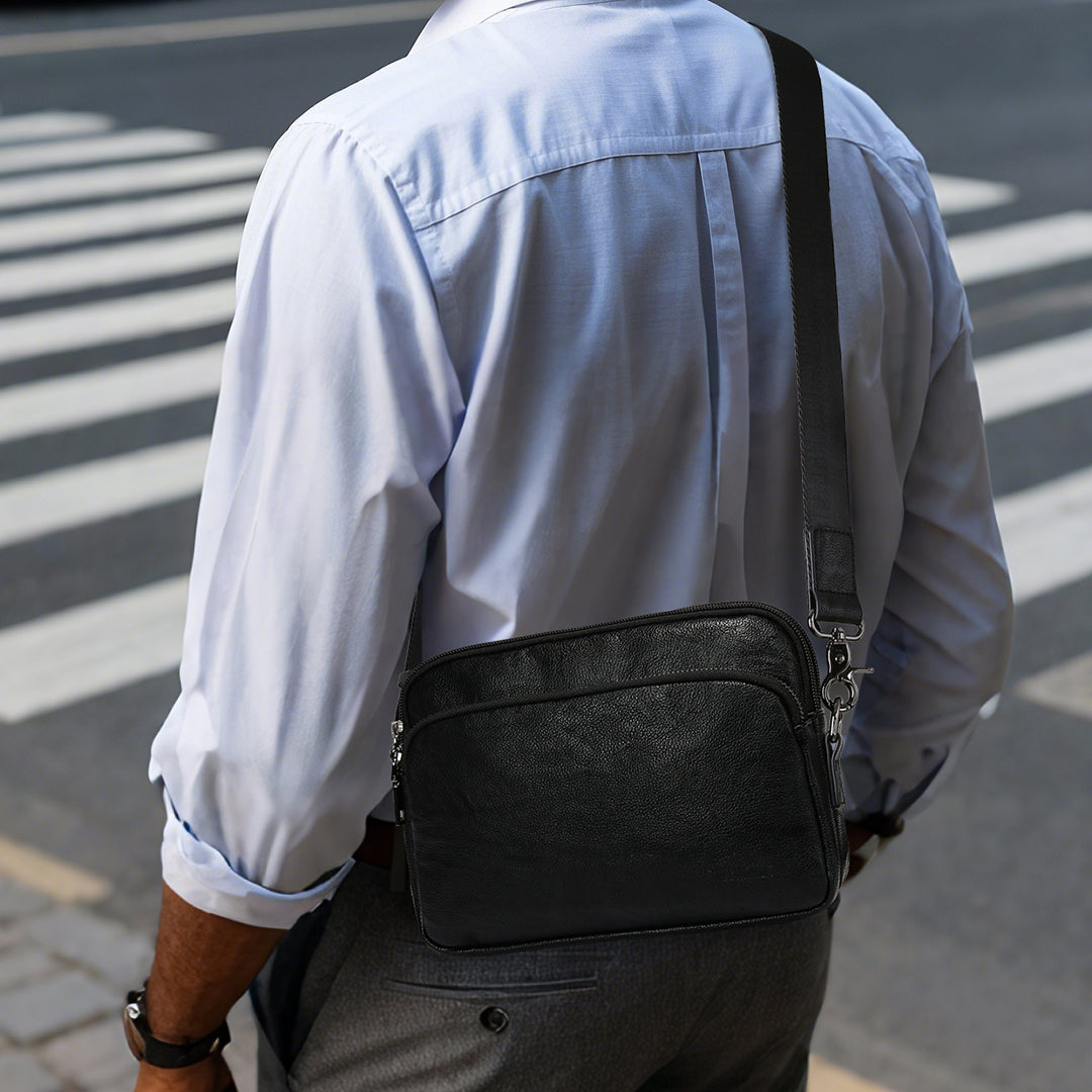 Menampilkan dua saku utama dengan ritsleting yang memudahkan akses. Bahan tahan lama terbuat dari material faux leather memberikan ketahanan maksimal. Dapat digunakan sebagai tas tangan atau tas selempang, memberikan fleksibilitas dalam gaya.