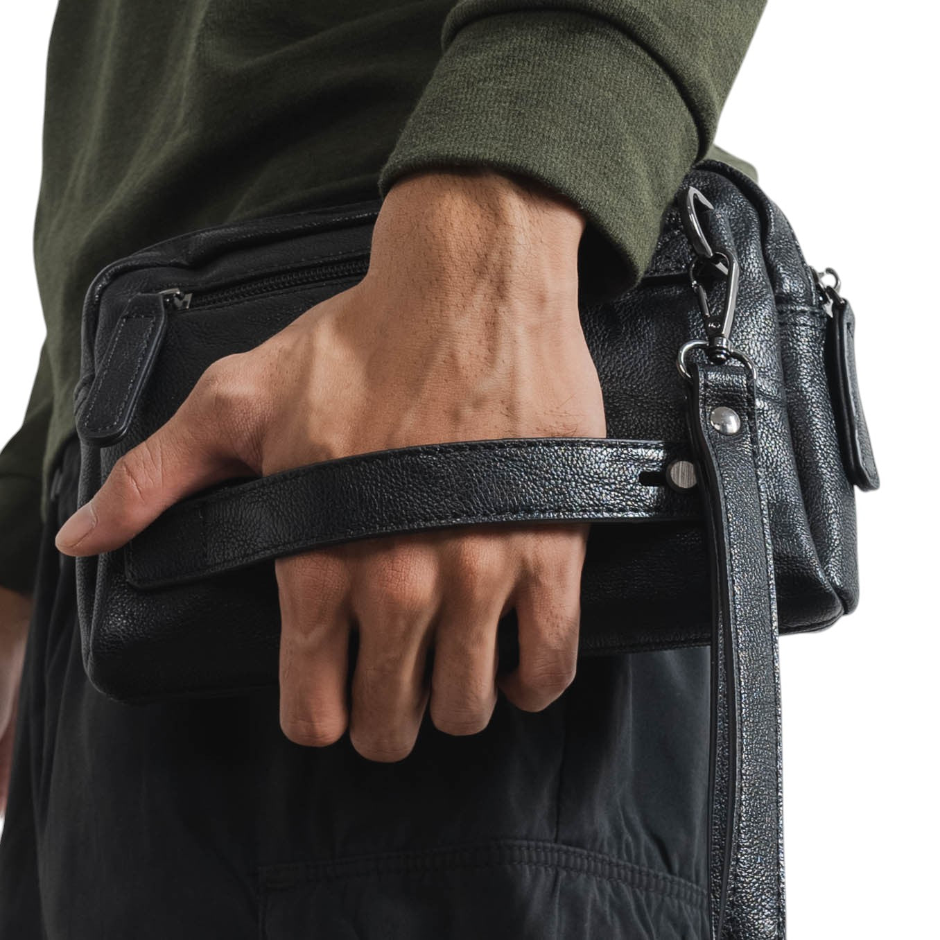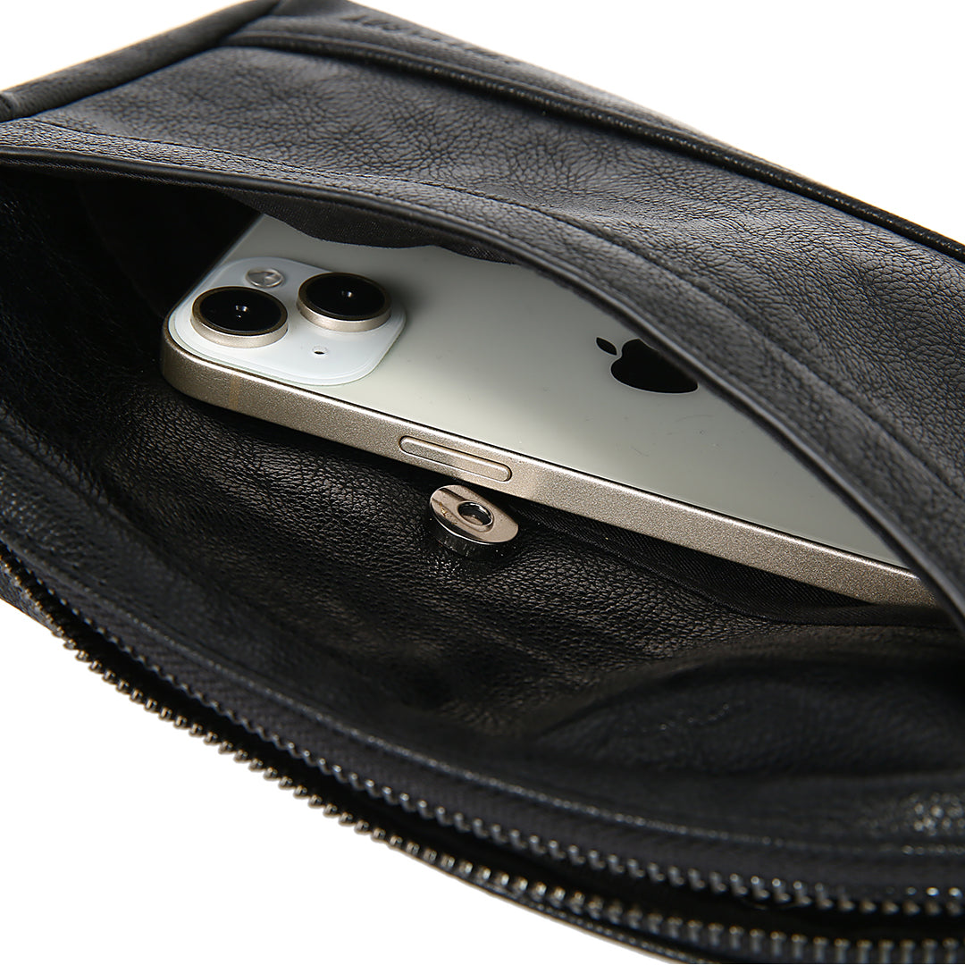 Exterior : 1 Media Pocket with Hidden Magnet, 1 Back Zip Pocket, Handle Leather Strap, Adjustable Shoulder Strap
