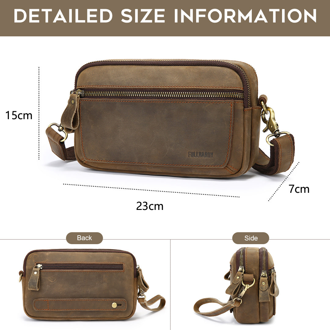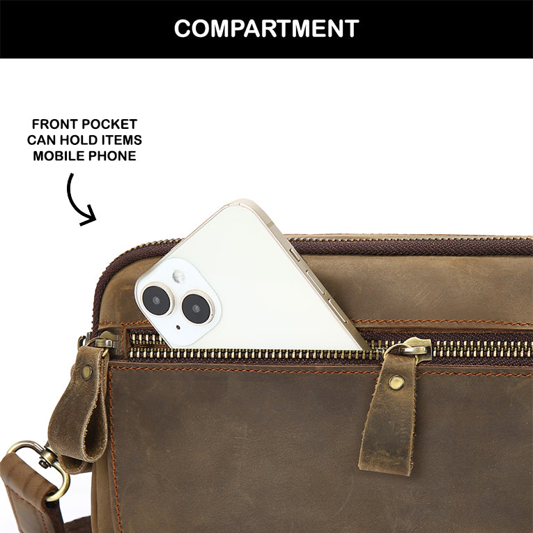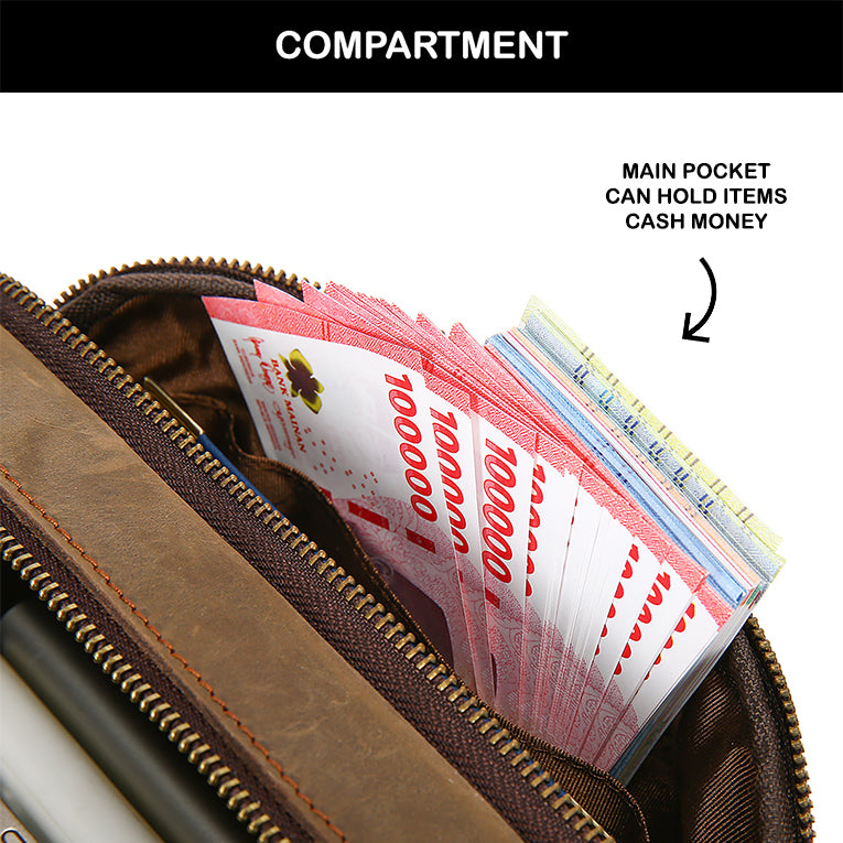 Kualitas premium dengan bahan kulit asli yang tahan lama dan elegan. Jahitan rapi, ritsleting kokoh, serta desain klasik dengan sentuhan vintage memberikan kesan mewah. Cocok untuk membawa barang penting dengan gaya maskulin dan berkelas.