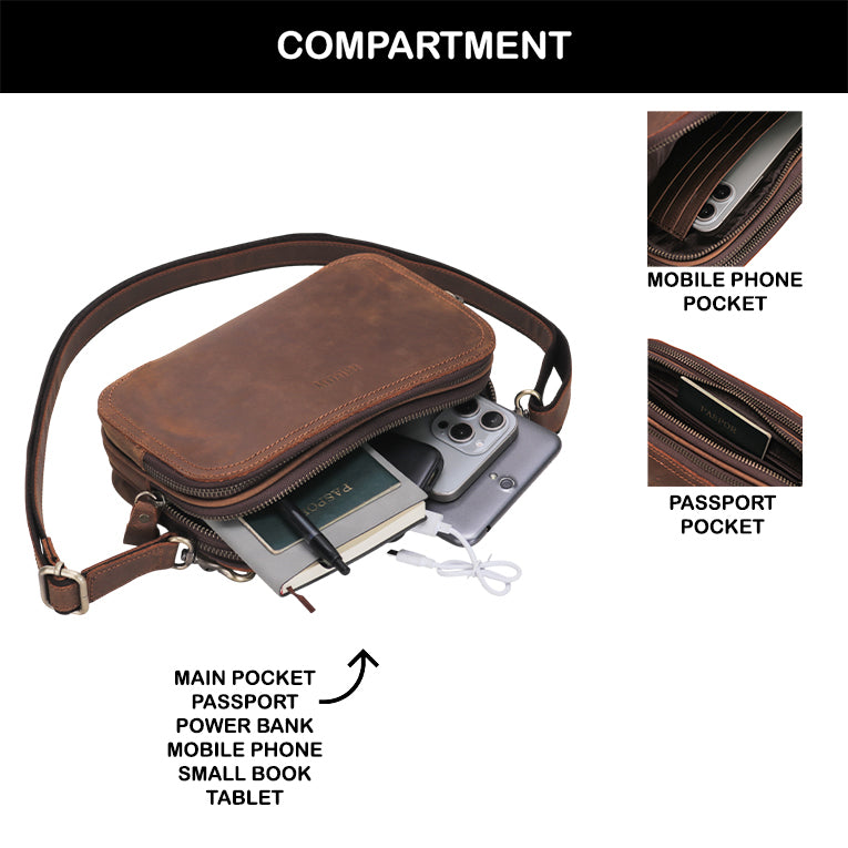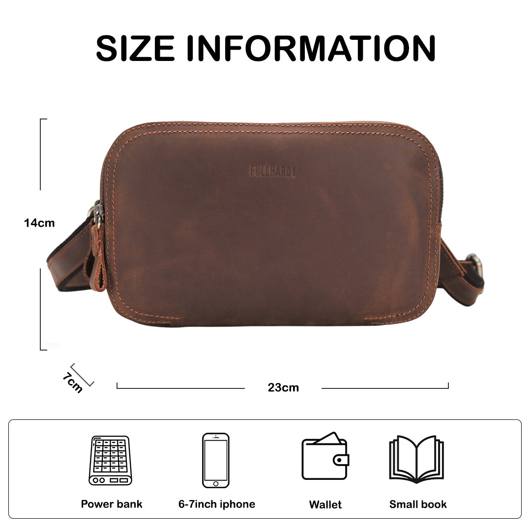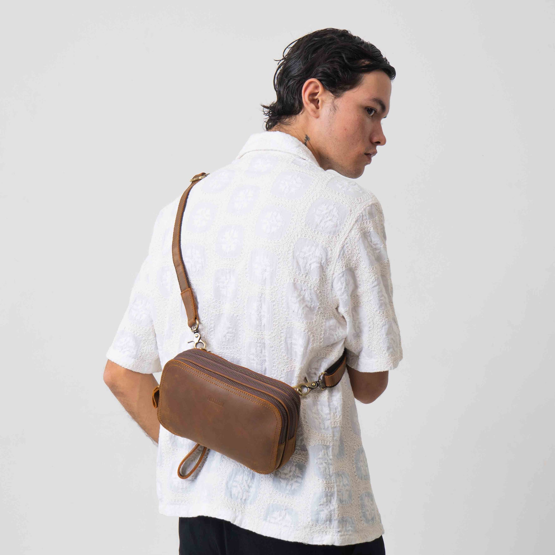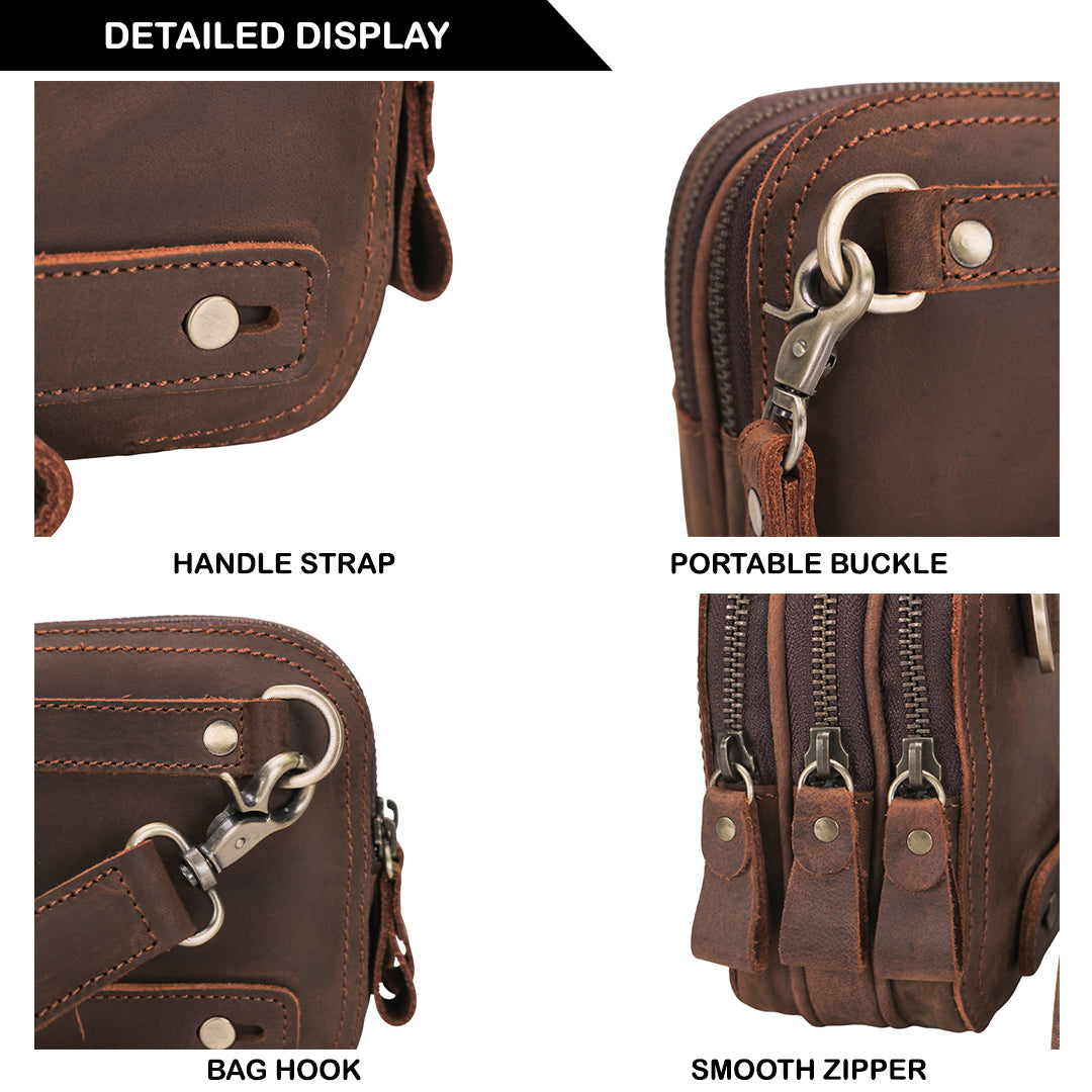 Kualitas premium dengan bahan kulit sapi yang tahan lama dan elegan. Jahitan rapi, ritsleting kokoh, serta desain klasik dengan sentuhan vintage memberikan kesan mewah. Cocok untuk membawa barang penting dengan gaya maskulin dan berkelas. Memiliki tiga ritsleting halus yang dapat memudahkan mengambil dan menyimpang barang yang terorganisir.