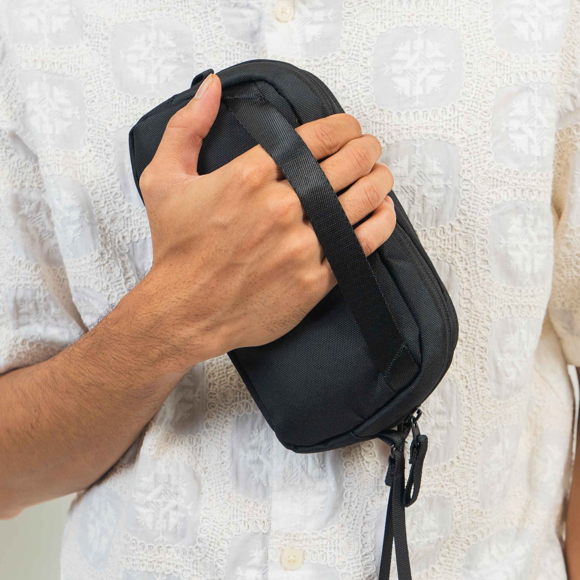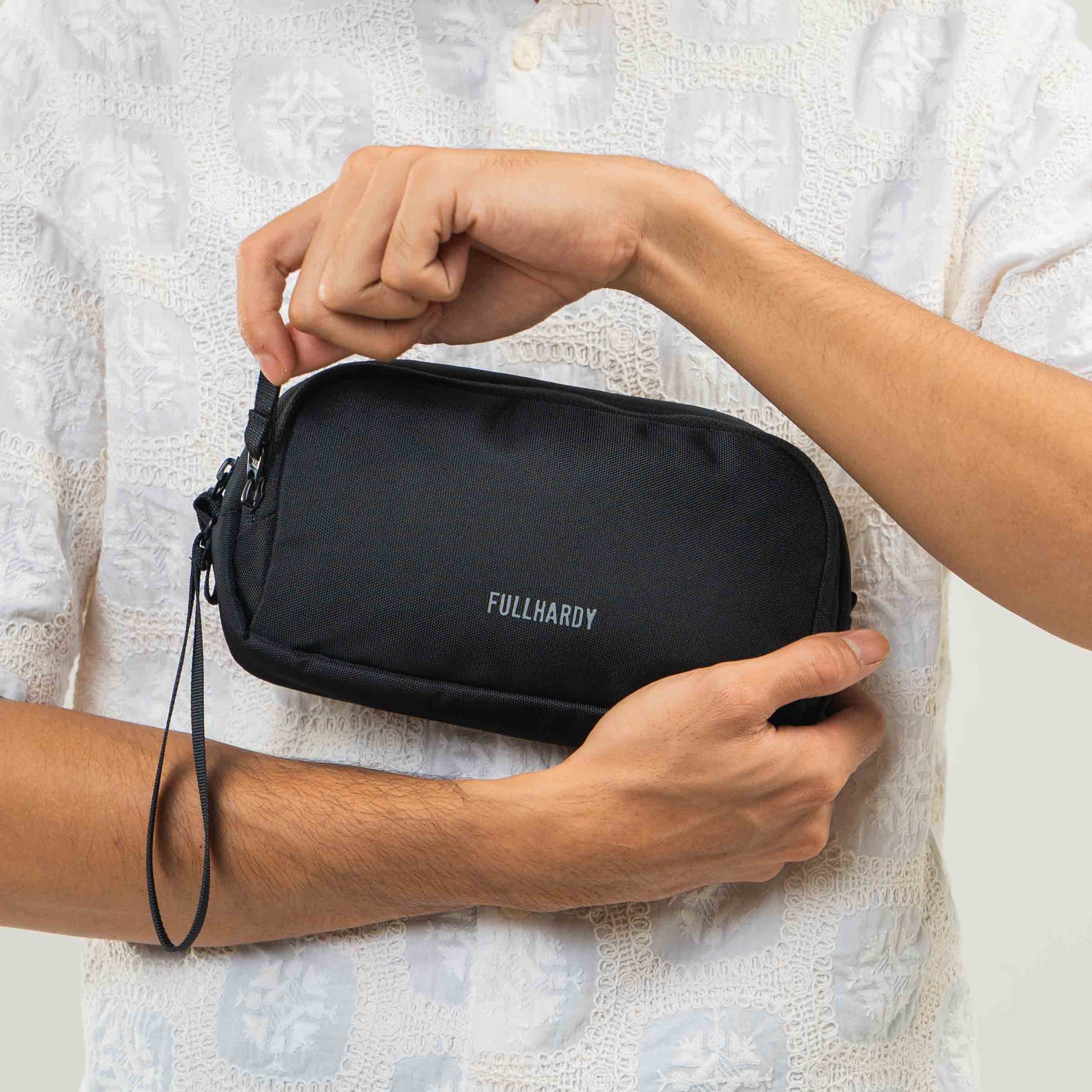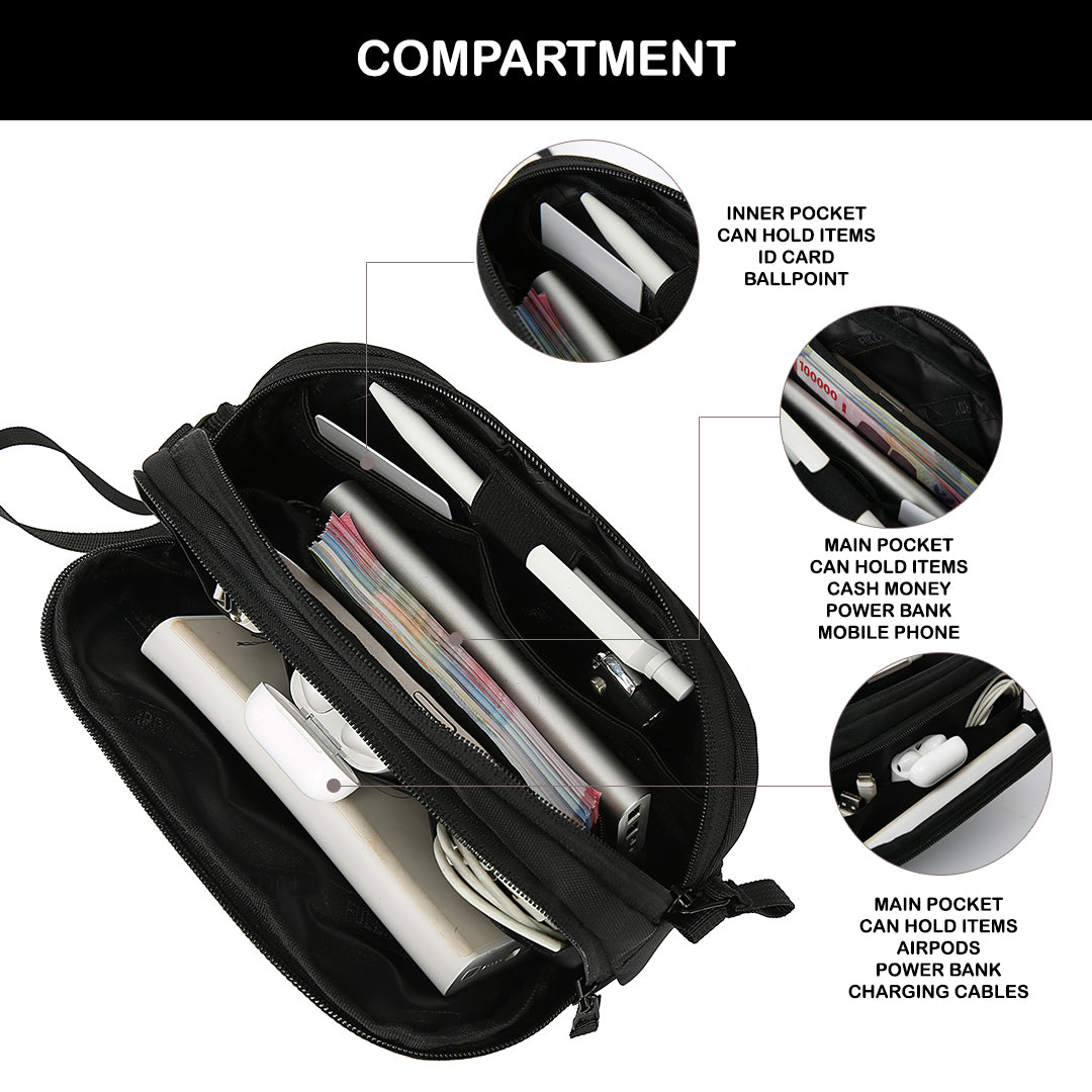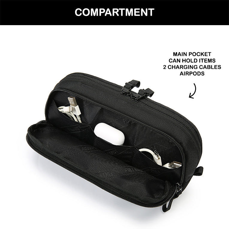 Berwarna hitam elegan dengan bentuk yang futuristik, sangat ringan, kokoh dan stylish. Menggunakan bahan tahan air atau water-resistant, cocok untuk aktivitas luar ruangan. Terdapat kompartemen yang terorganisir untuk menyimpan barang penting. Memiliki hands strap agar mudah dibawa untuk pengguna di segala situasi. Secara keseluruhan, tas ini memancarkan kesan simpel, fungsional, dan berkelas cocok buat yang suka tampil keren tanpa usaha berlebihan.