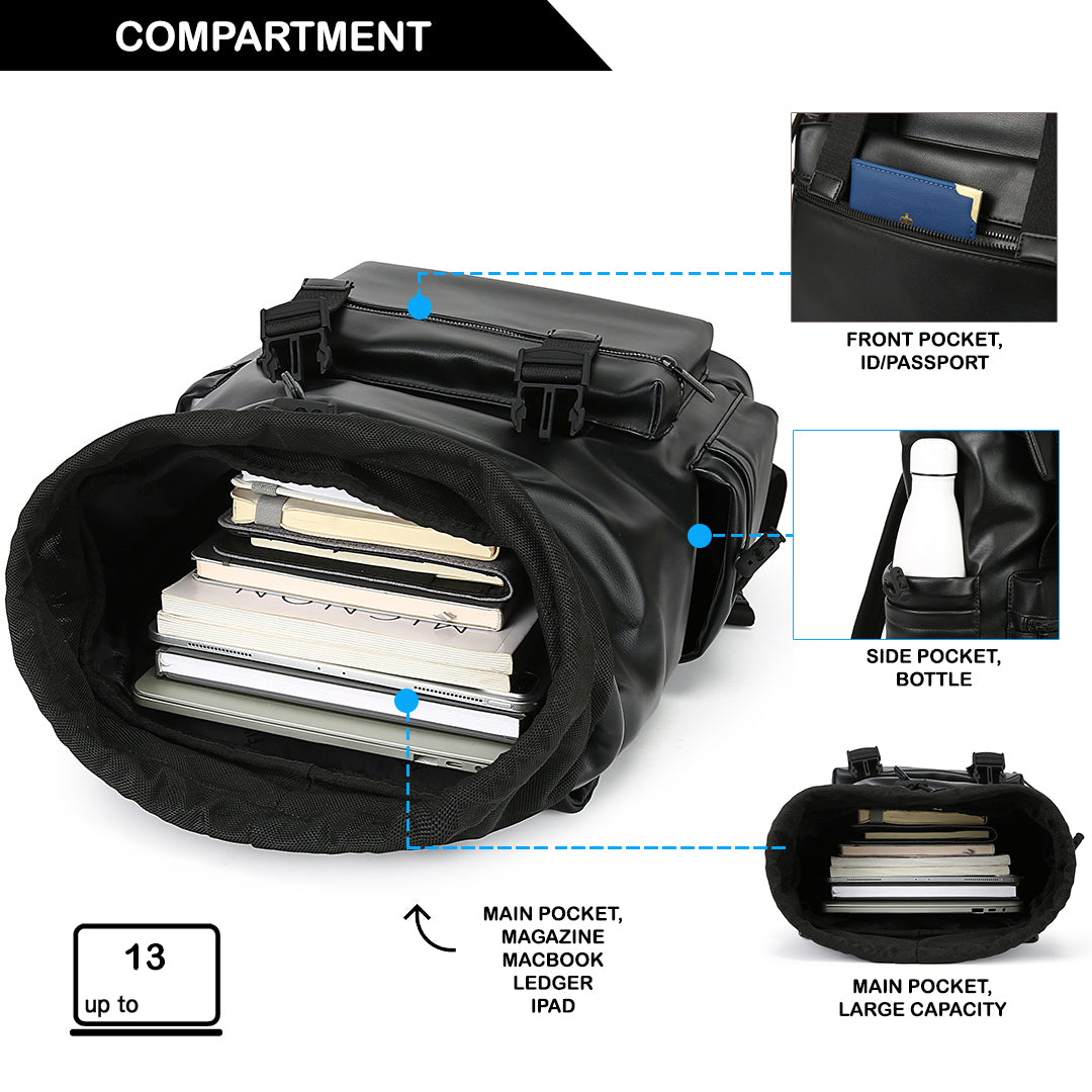Gaya minimalis, bermaterial faux leather memberikan kesan elegan dan serbaguna, cocok untuk berbagai kesempatan. Penyimpanan luas berkapasitas besar, tali bahu ergonomis yang dapat disesuaikan, memberikan kenyamanan maksimal saat digunakan. Fitur kunci buckle pengunci yang aman, menjaga barang tetap di tempatnya. menggabungkan gaya dan fungsi dengan sempurna.