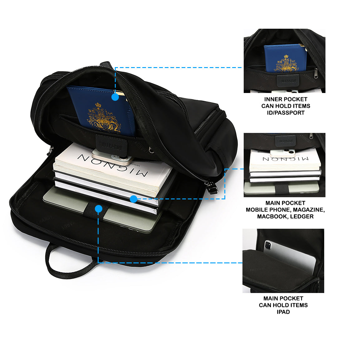 Interior : 1 Zip Pocket, 1 Media Pocket, Padded Laptop fit up to 15"