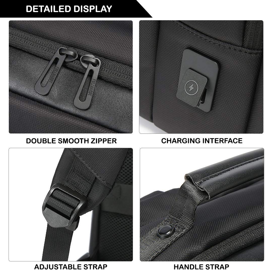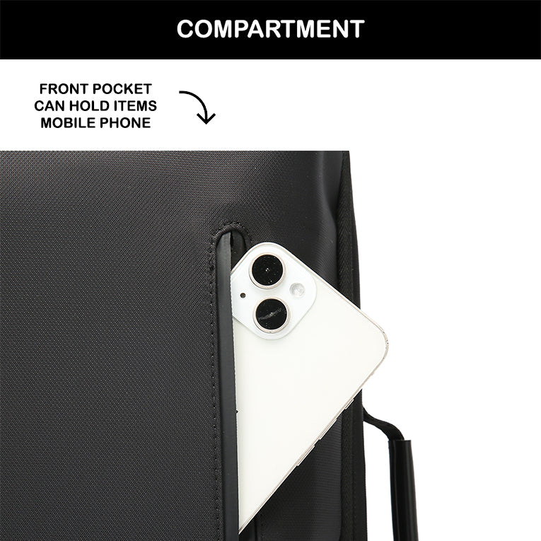 Dirancang untuk para pengguna yang aktif dan modern, tas ini menawarkan kenyamanan serta kepraktisan dalam setiap perjalanan. Material berkualitas, terbuat dari bahan tahan lama yang menjaga tas ini tetap awet meski digunakan sehari-hari. Memiliki satu kantong di bagian depan untuk akses mudah, dan memiliki kantong kecil rahasia di bagian belakang tas. Terdapat fitur charging interface, di bagian sisi tas memudahkan pengisian daya menggunakan power bank. Desain ergonomis memudahkan pemakaian dan menjaga keseimbangan saat digunakan di bahu. Tas ini dapat diandalkan dalam berbagai kesempatan.