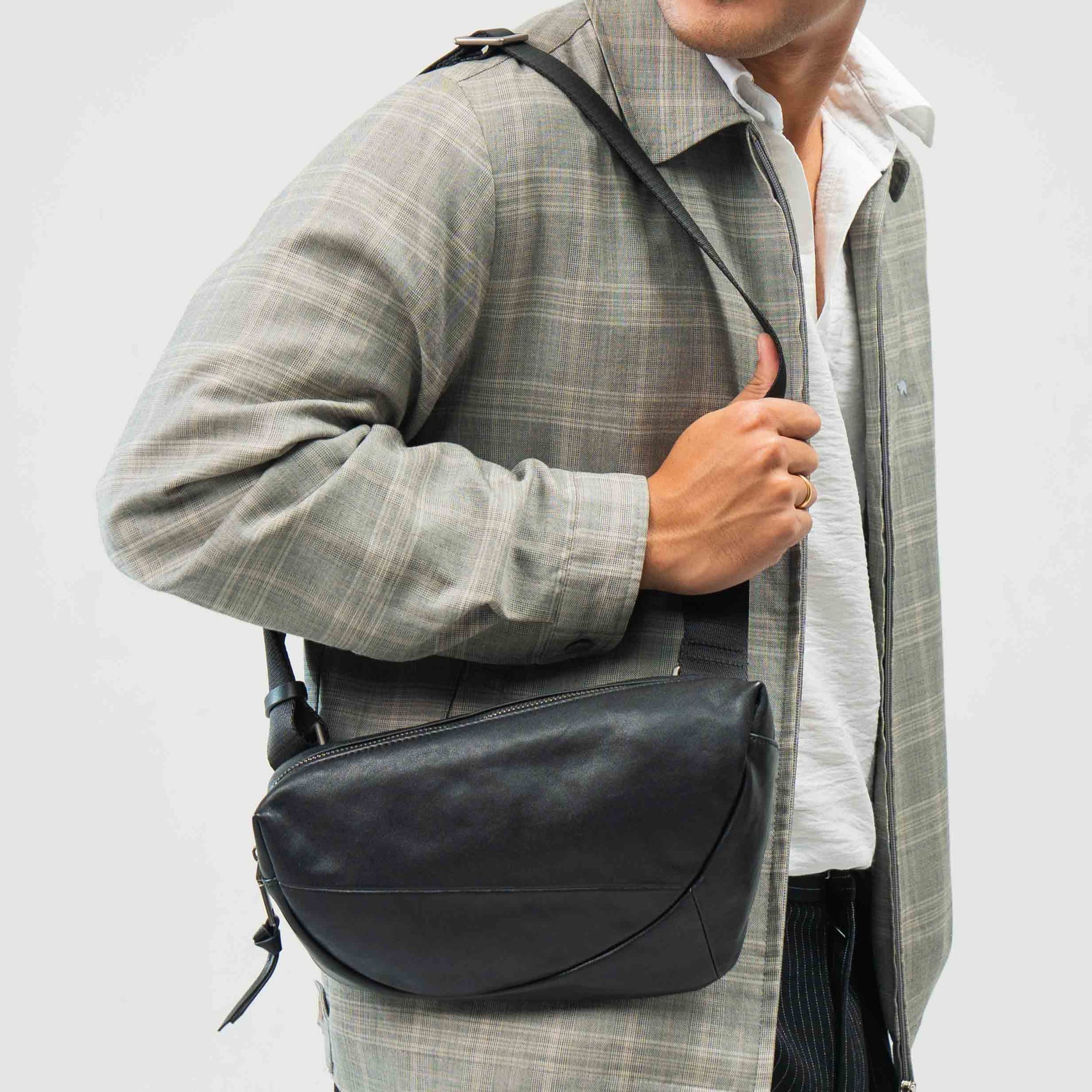 Warna hitam klasik yang memberikan kesan mewah dan maskulin. Terbuat dari bahan kulit sapi berkualitas, tas ini memiliki tekstur halus dengan sedikit kilau yang menambah tampilan premium. Strap nya bisa disesuaikan dengan kebutuhan. Dengan desain yang stylish dan fungsional, tas ini cocok untuk berbagai aktivitas, baik casual maupun formal.