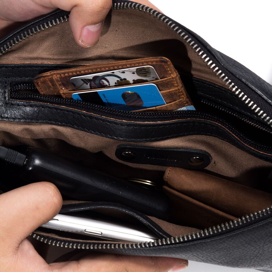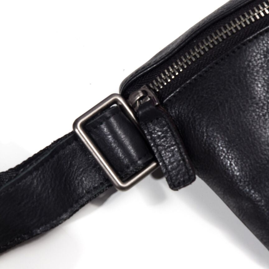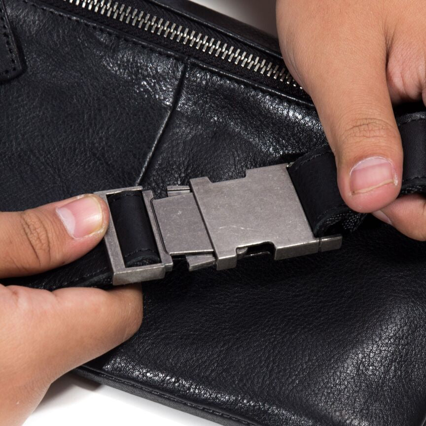 Warna hitam klasik yang memberikan kesan mewah dan maskulin. Terbuat dari bahan kulit sapi berkualitas, tas ini memiliki tekstur halus dengan sedikit kilau yang menambah tampilan premium. Strapnya bisa disesuaikan dengan kebutuhan. Dengan desain yang stylish dan fungsional, tas ini cocok untuk berbagai aktivitas, baik casual maupun formal.