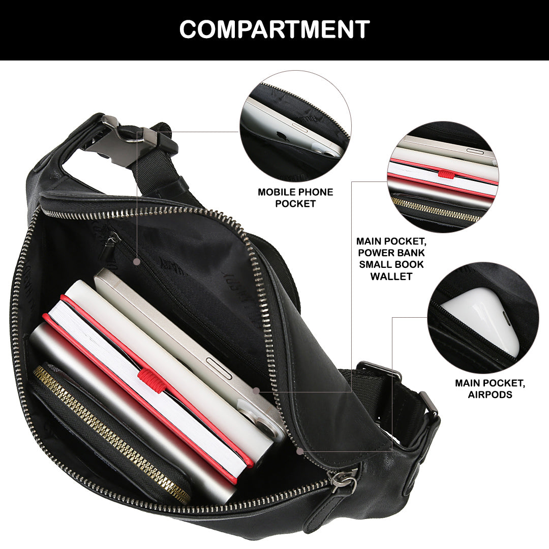 Dari kulit berkualitas yang memberikan tampilan elegan memudahkan untuk dipadukan dengan berbagai outfit. Ruang utama yang cukup besar untuk menyimpan barang penting. Dilengkapi dengan kantong kecil untuk menyimpan barang kecil agar lebih tertata. Tali yang dapat disesuaikan membuat tas dapat disesuaikan dengan ukuran tubuh penggunanya, memastikan kenyamanan saat digunakan.