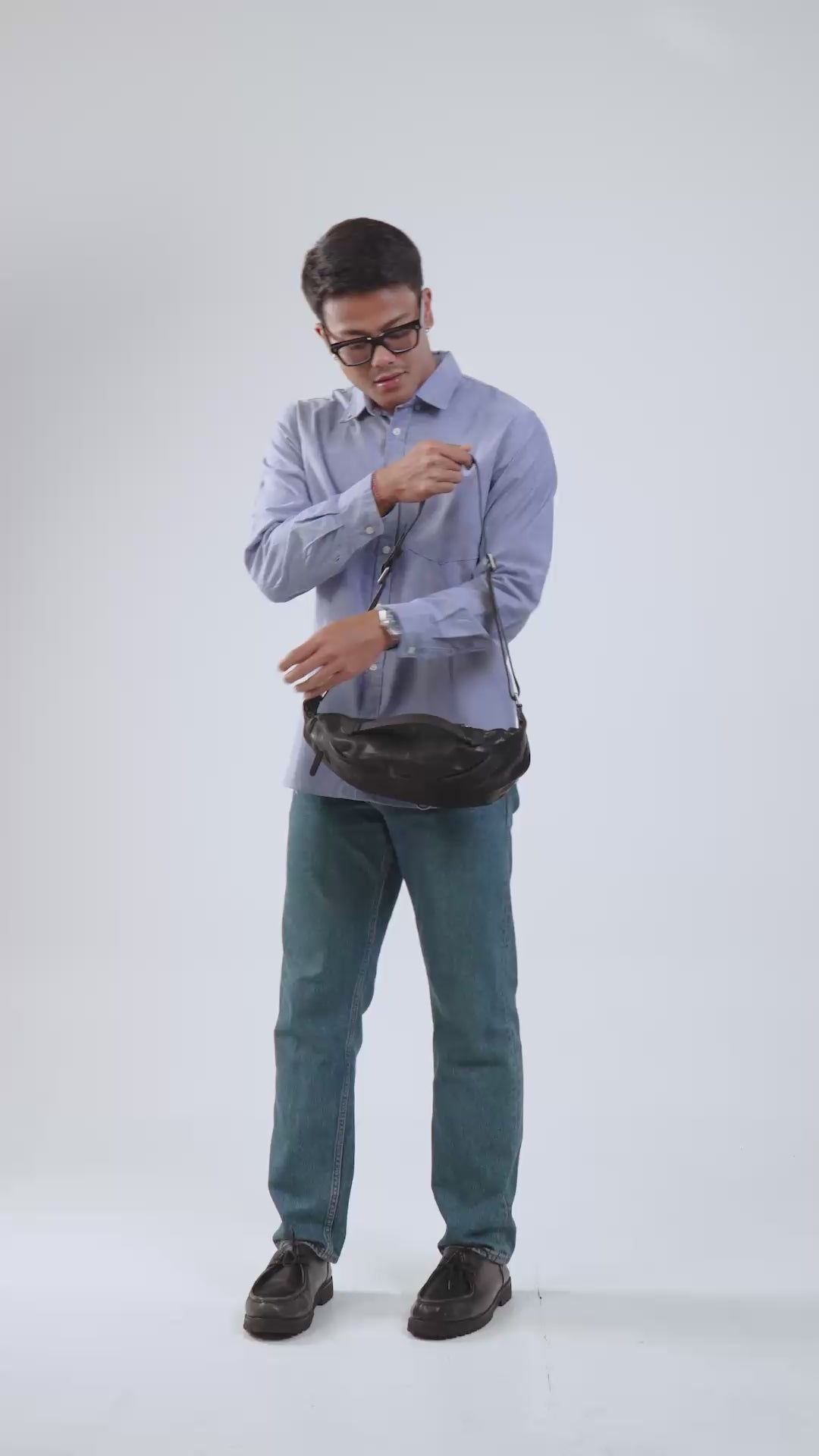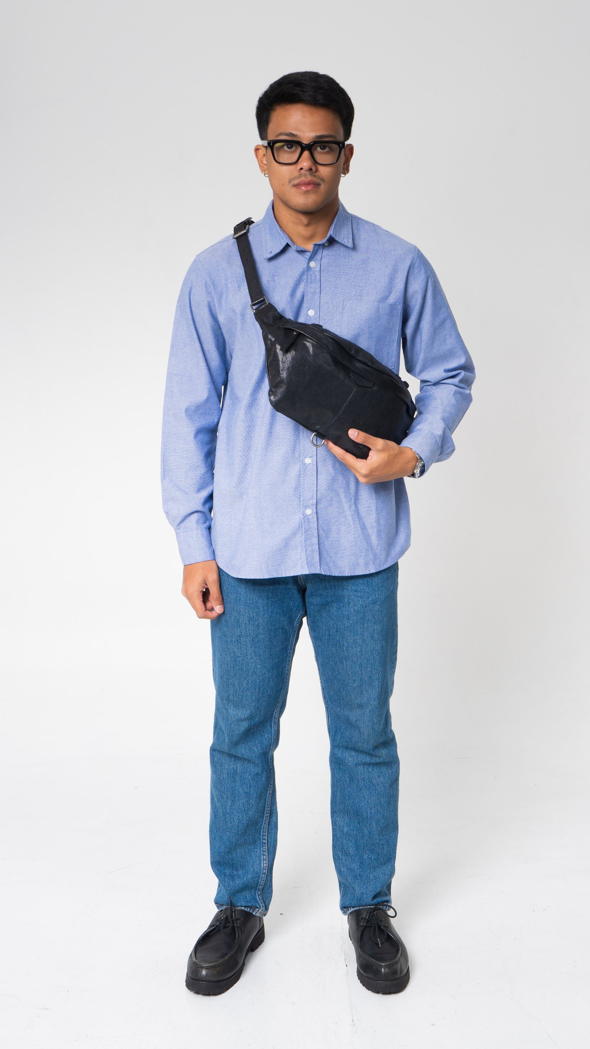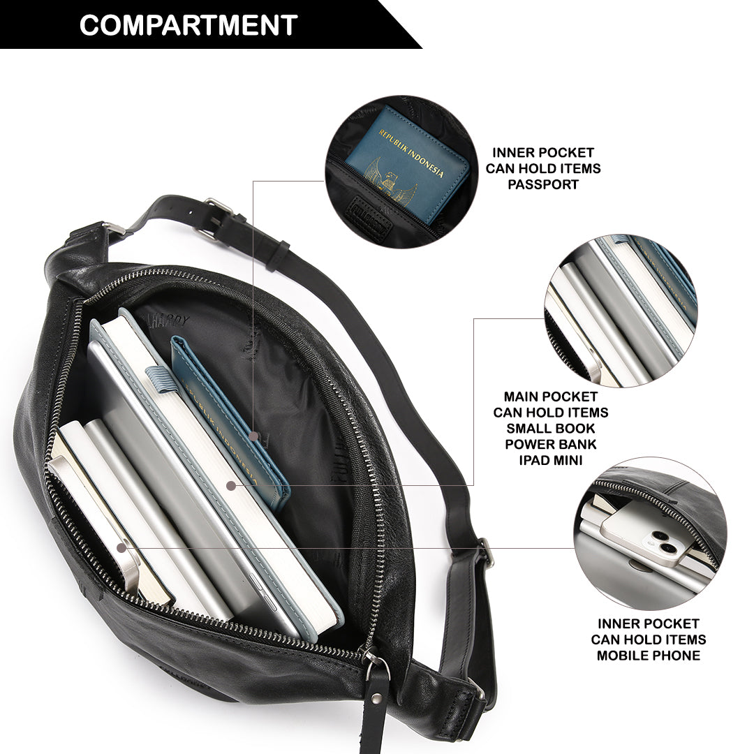 Tampil elegan dengan bahan genuine leather hitam yang halus dan berkelas. Desainnya minimalis namun profesional, dilengkapi dengan penguncian yang kuat di bagian tali. Jahitan rapi dan aksesoris metalik berbentuk gesper berkualitas menambah kesan premium. Cocok untuk keperluan bisnis atau gaya kasual yang tetap stylish.
