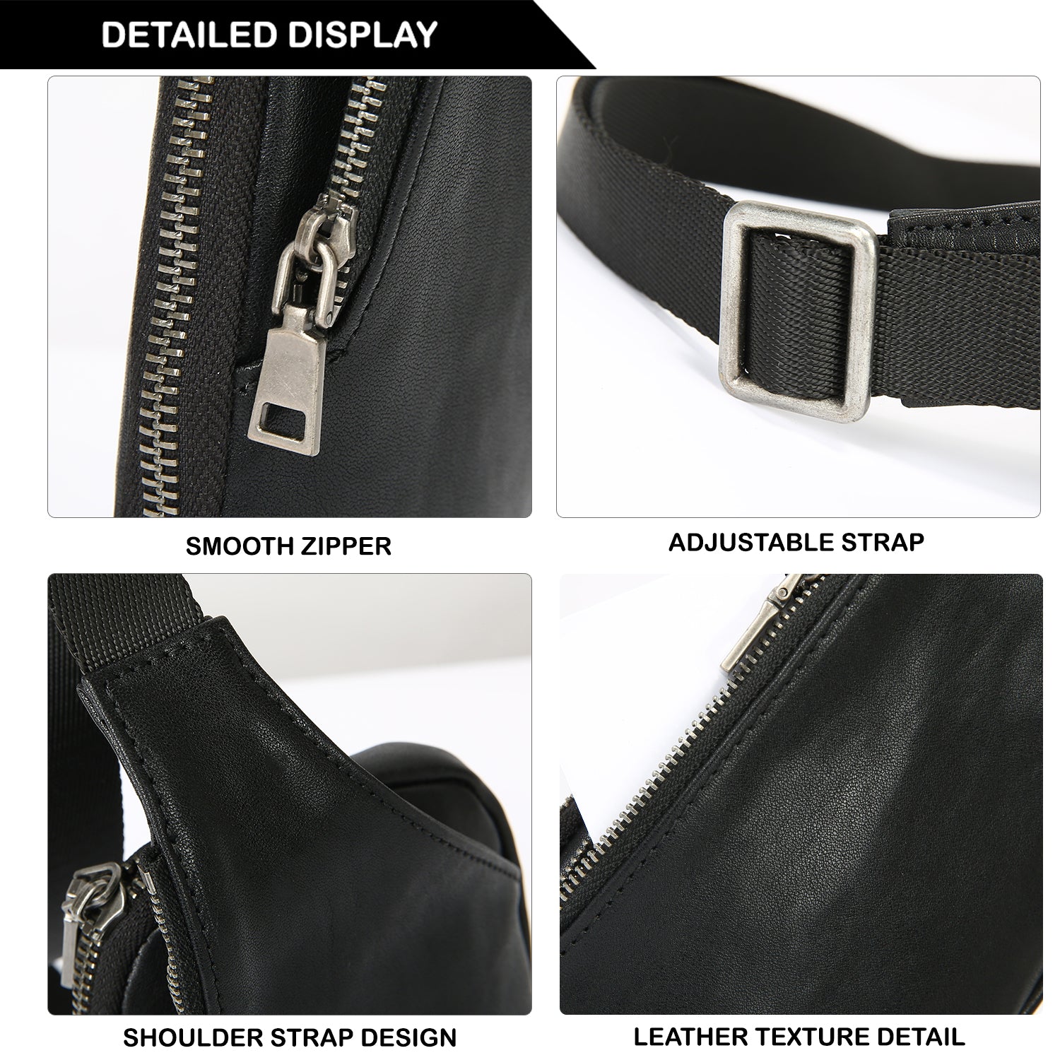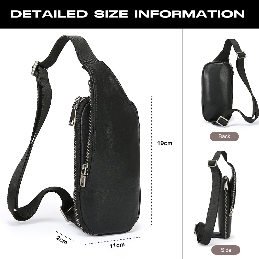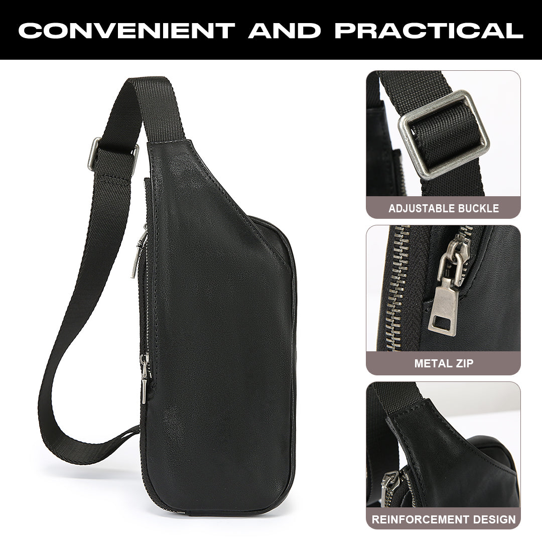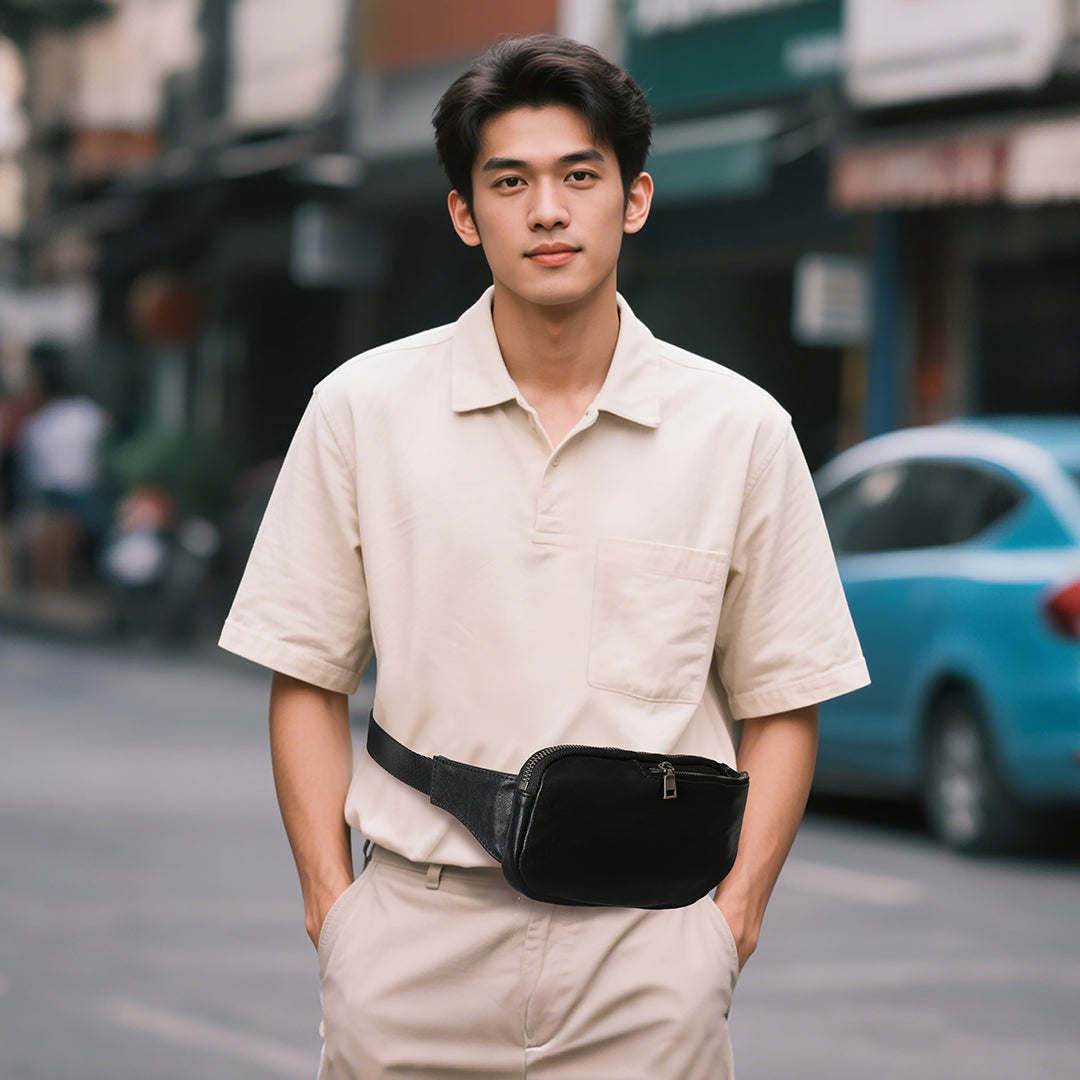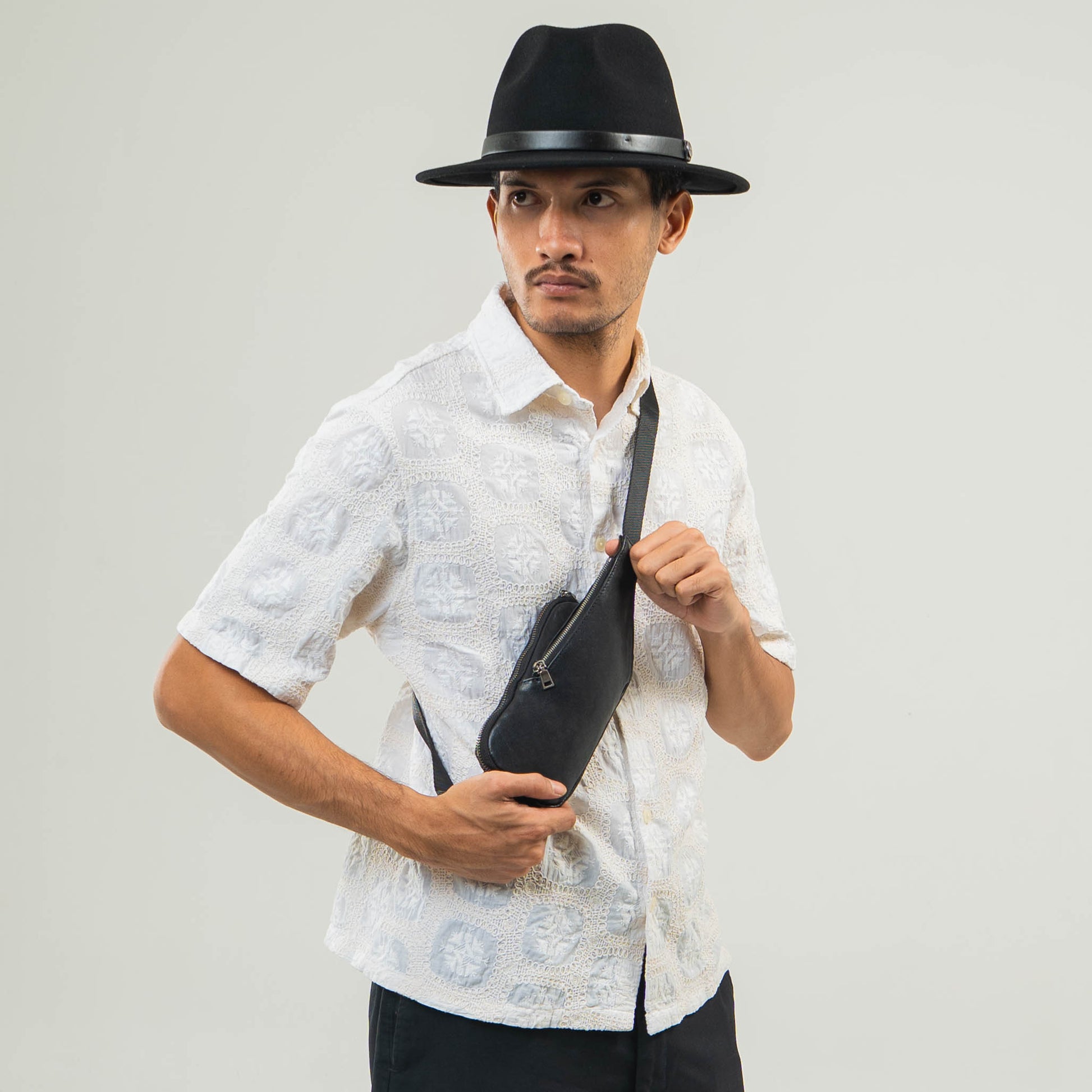Warna hitam klasik yang memberikan kesan mewah dan maskulin. Terbuat dari bahan kulit sapi berkualitas, tas ini memiliki tekstur halus dengan sedikit kilau yang menambah tampilan premium. Strap nya bisa disesuaikan dengan kebutuhan. Dengan desain yang stylish dan fungsional, tas ini cocok untuk berbagai aktivitas, baik casual maupun formal.