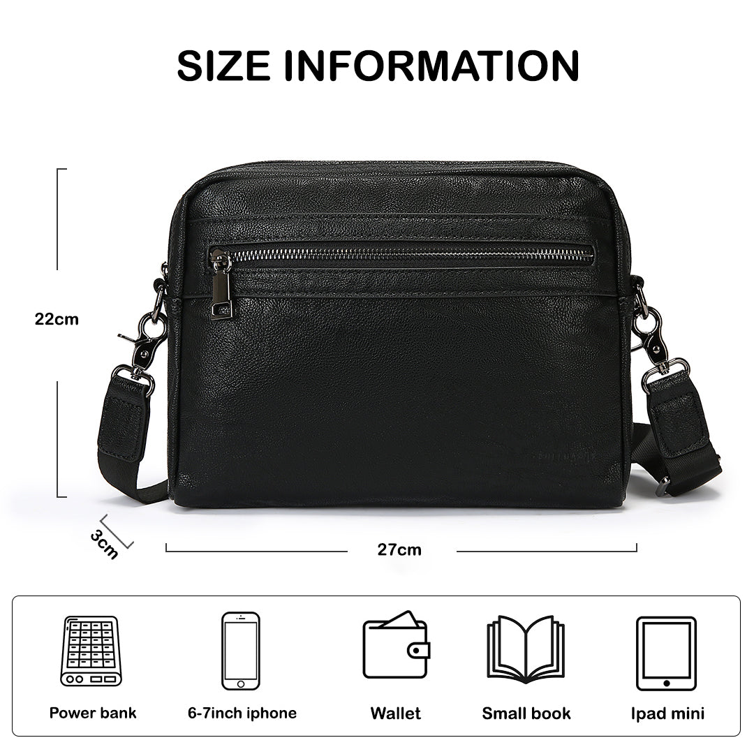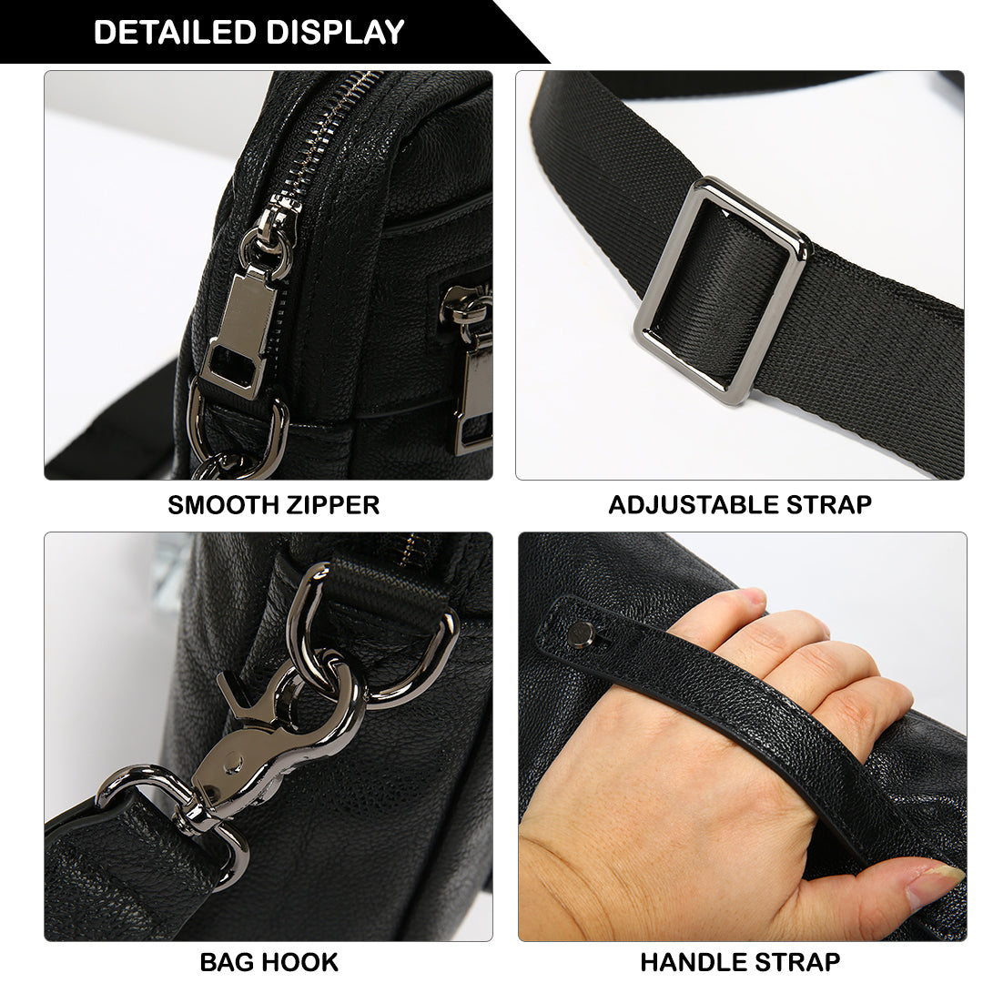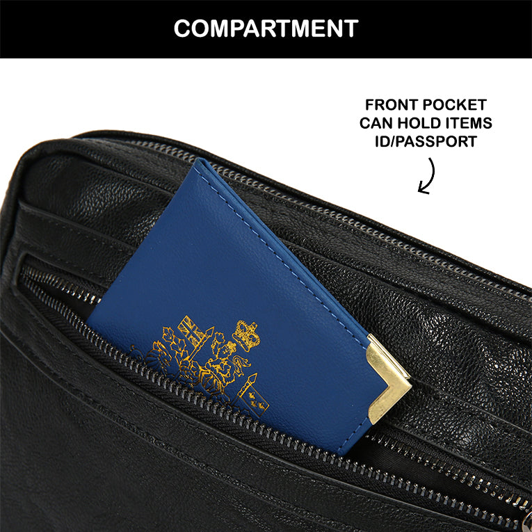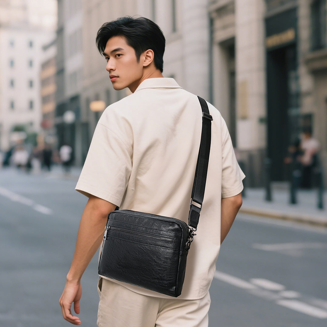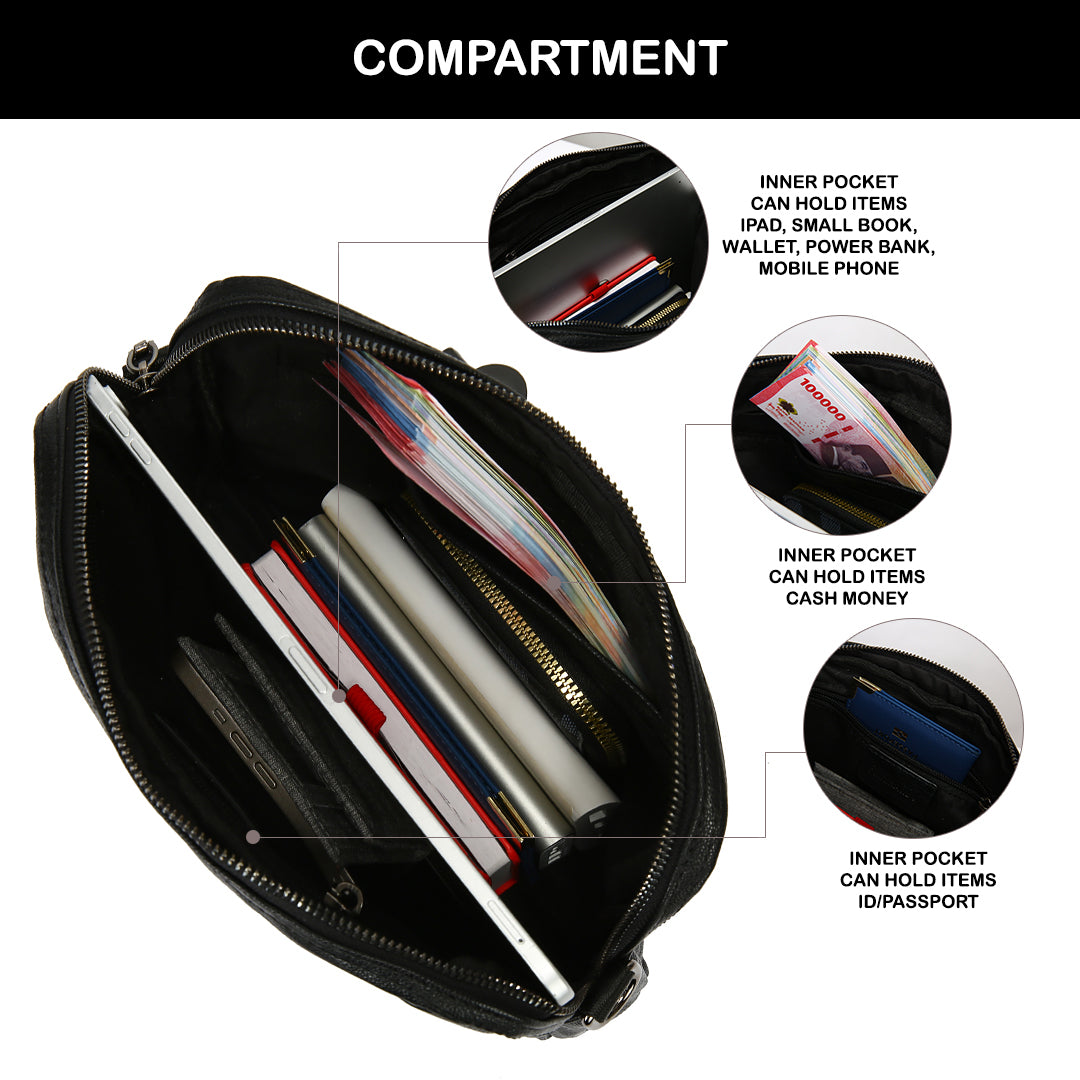 Desainnya yang rapi dan minimalis menjadikannya cocok untuk berbagai kesempatan, baik formal maupun kasual. Material berbahan faux leather yang tahan lama. Dapat digunakan sebagai tas genggam dan tas selempang, dengan tali yang dapat disesuaikan dan terdapat handle strap untuk kenyamanan pemakaian yang fleksibel. Zipper halus memastikan akses mudah ke kompartemen dengan sistem penutupan yang aman. Memiliki ruang yang cukup luas untuk menyimpan barang-barang penting.