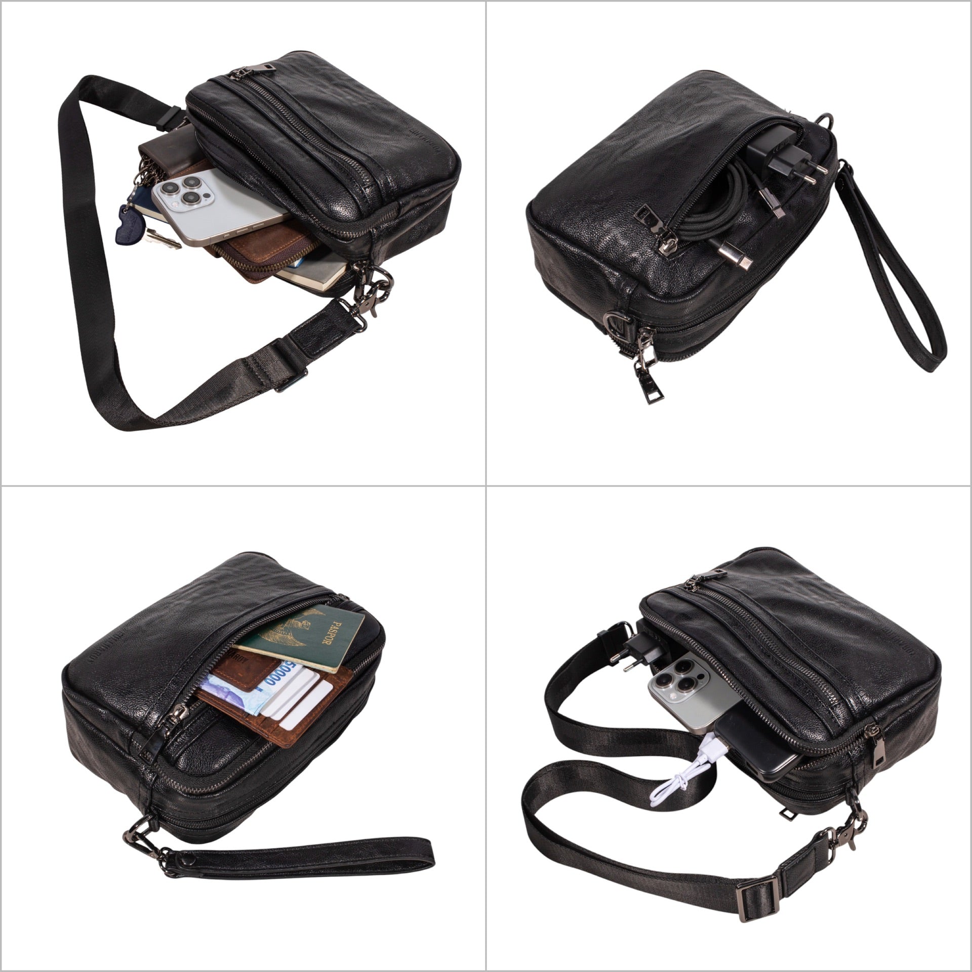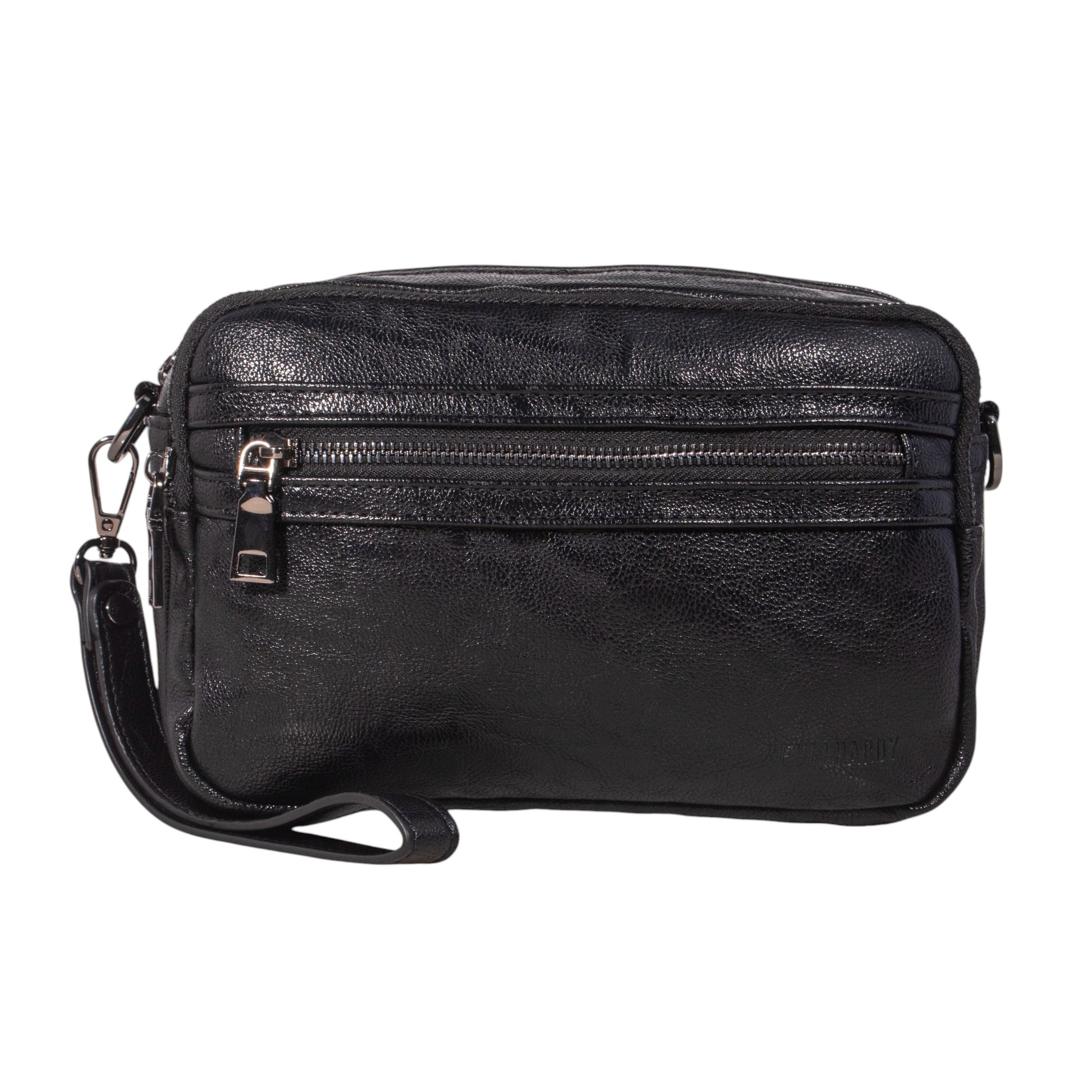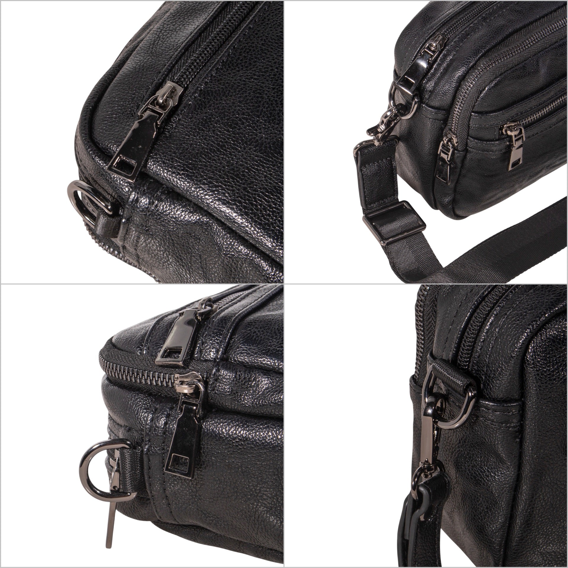 Exterior : 2 Zip Pocket,1 Back Zip Pocket, Handle Leather Strap, Adjustable Shoulder Strap