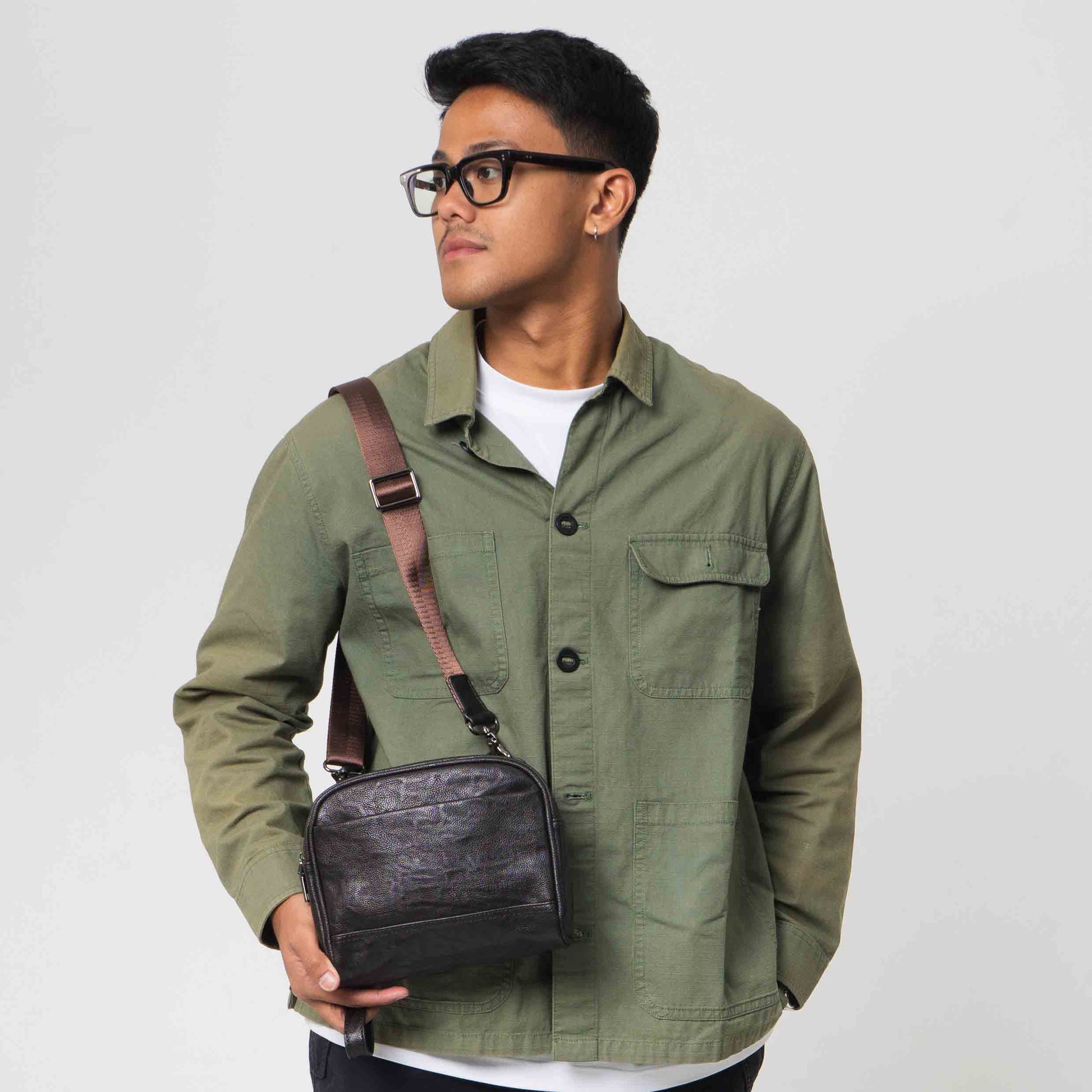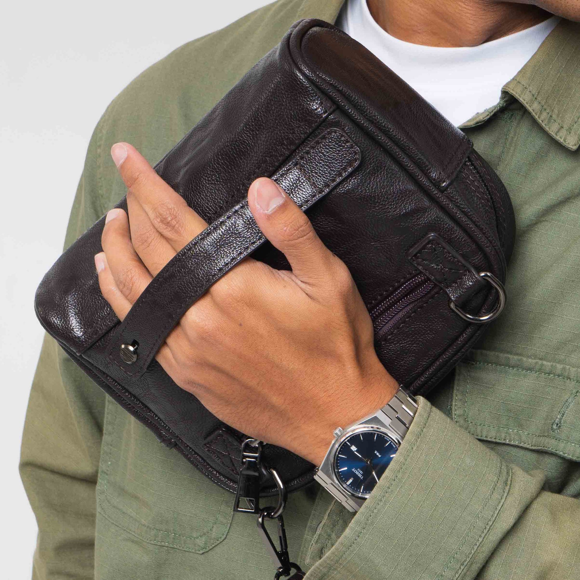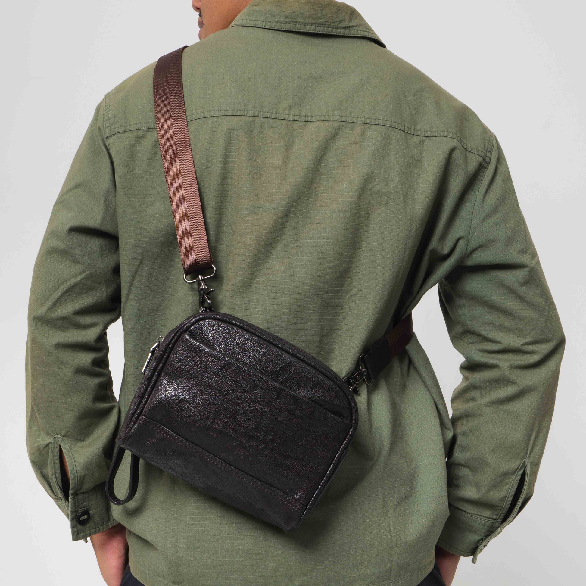 Tas selempang dari Fullhardy ini menawarkan desain yang elegan dan maskulin, cocok digunakan untuk kegiatan sehari-hari maupun acara santai.