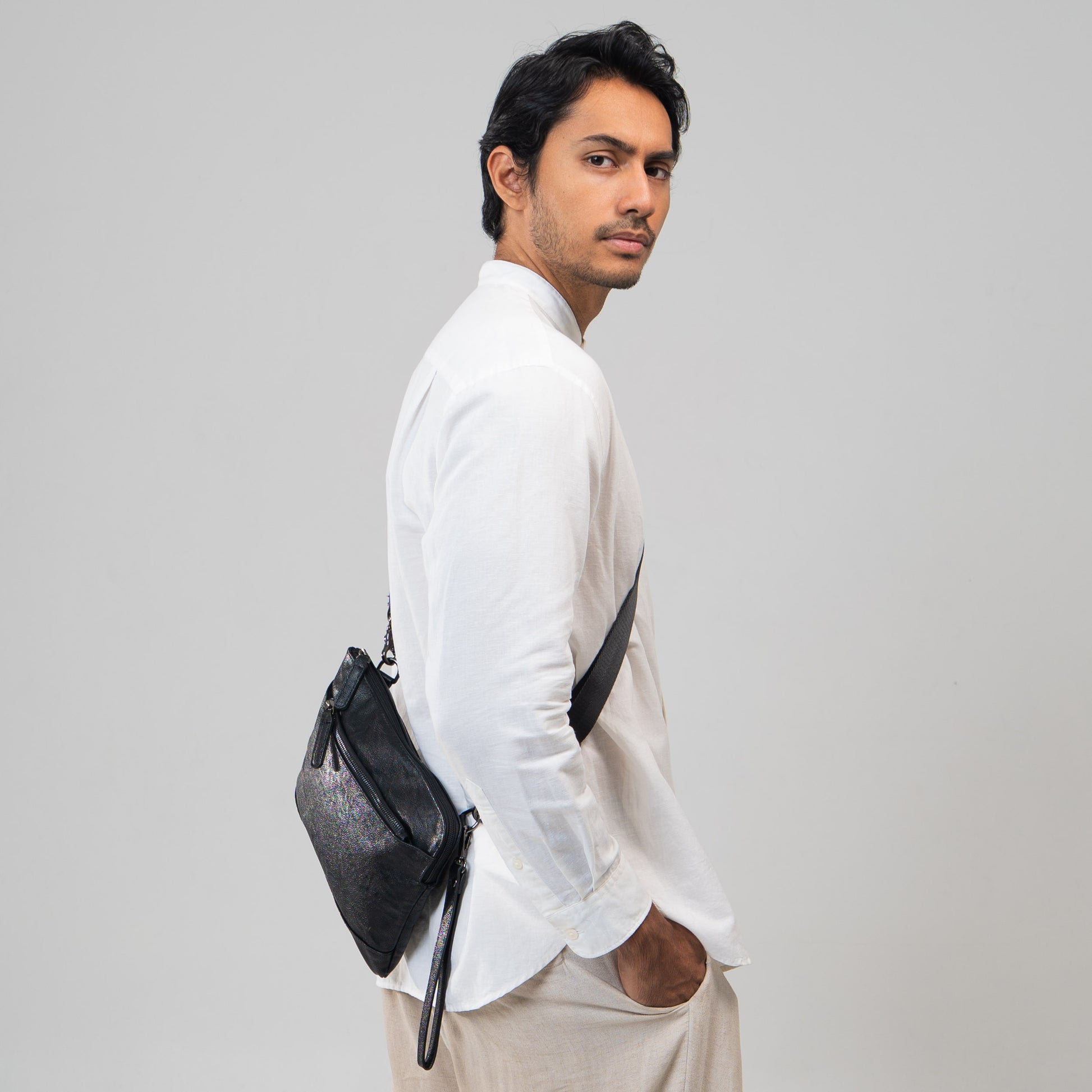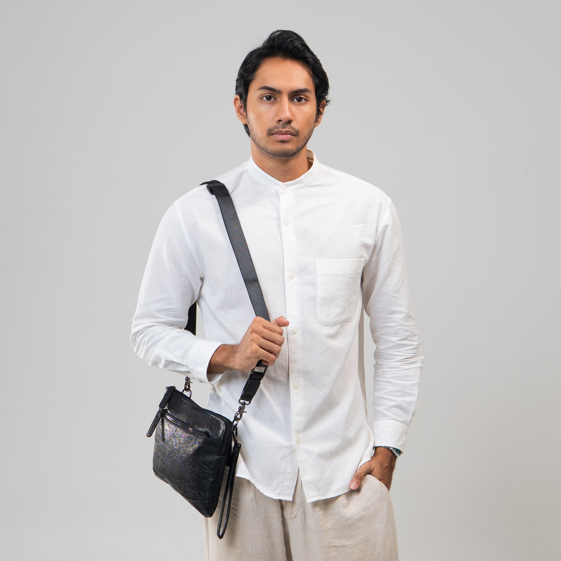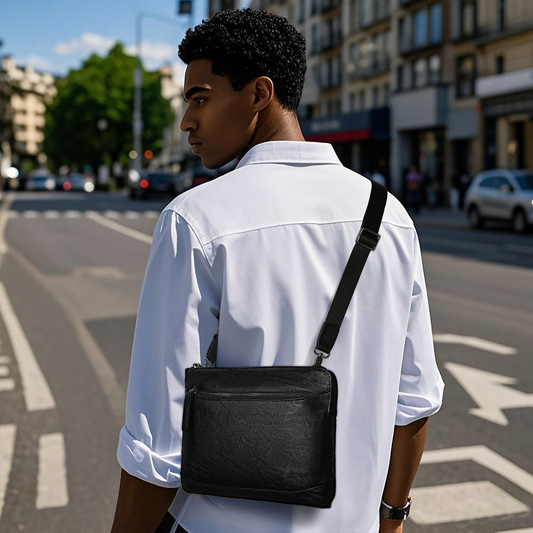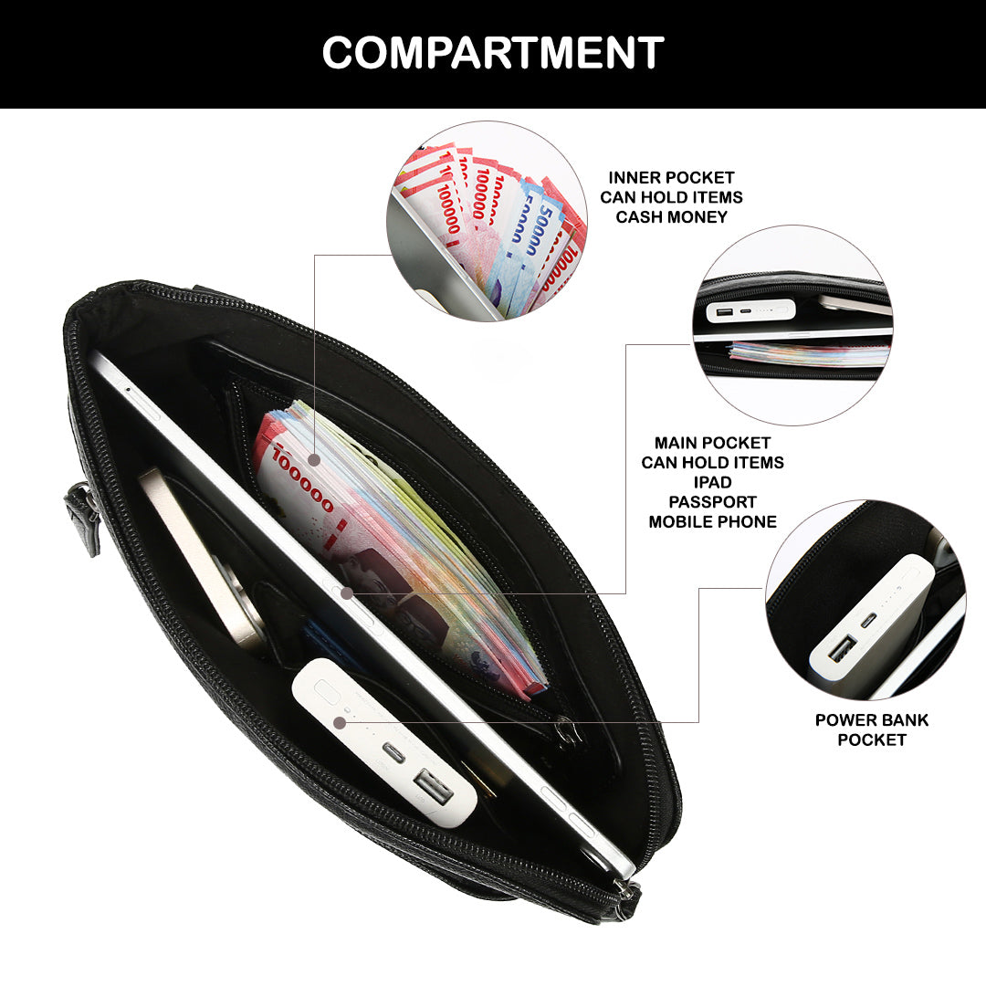 Perpaduan sempurna antara gaya dan fungsionalitas. Terbuat dari faux leather berkualitas dengan tekstur elegan, dilengkapi dengan kompartemen yang cukup untuk menyimpan barang. Didesain dengan ritsleting kuat, logo yang terukir rapi, serta mudah dibawa sangat praktis, untuk penampilan berkelas dan kemudahan beraktivitas.
