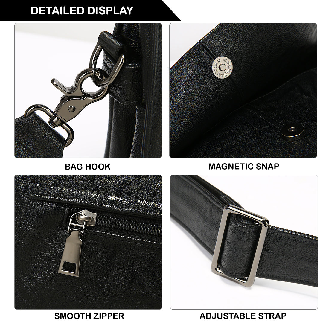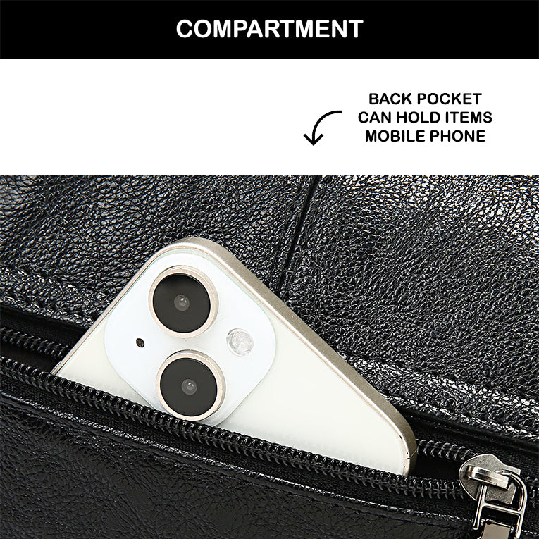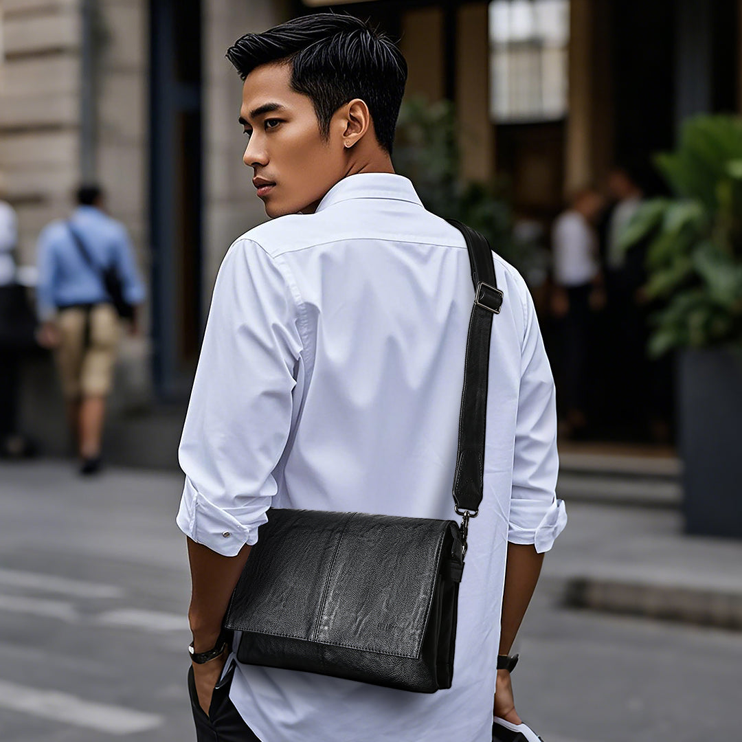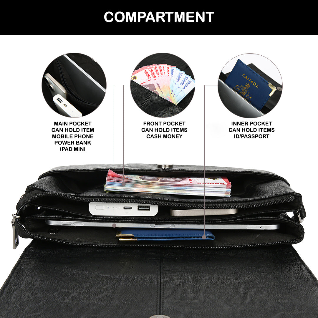 Menampilkan tekstur mewah berbahan faux leather dengan tampilan yang kokoh, bertekstur halus, kuat, dan bahan yang tahan lama. Desain menggunakan penutup dengan pengait magnetic clip, memberikan perlindungan ekstra terhadap barang di dalam tas. Praktis untuk perjalanan dengan berbagai kompartemen terpisah, tas ini memiliki pengorganisasian barang dengan baik. Cocok digunakan untuk gaya formal maupun kasual.