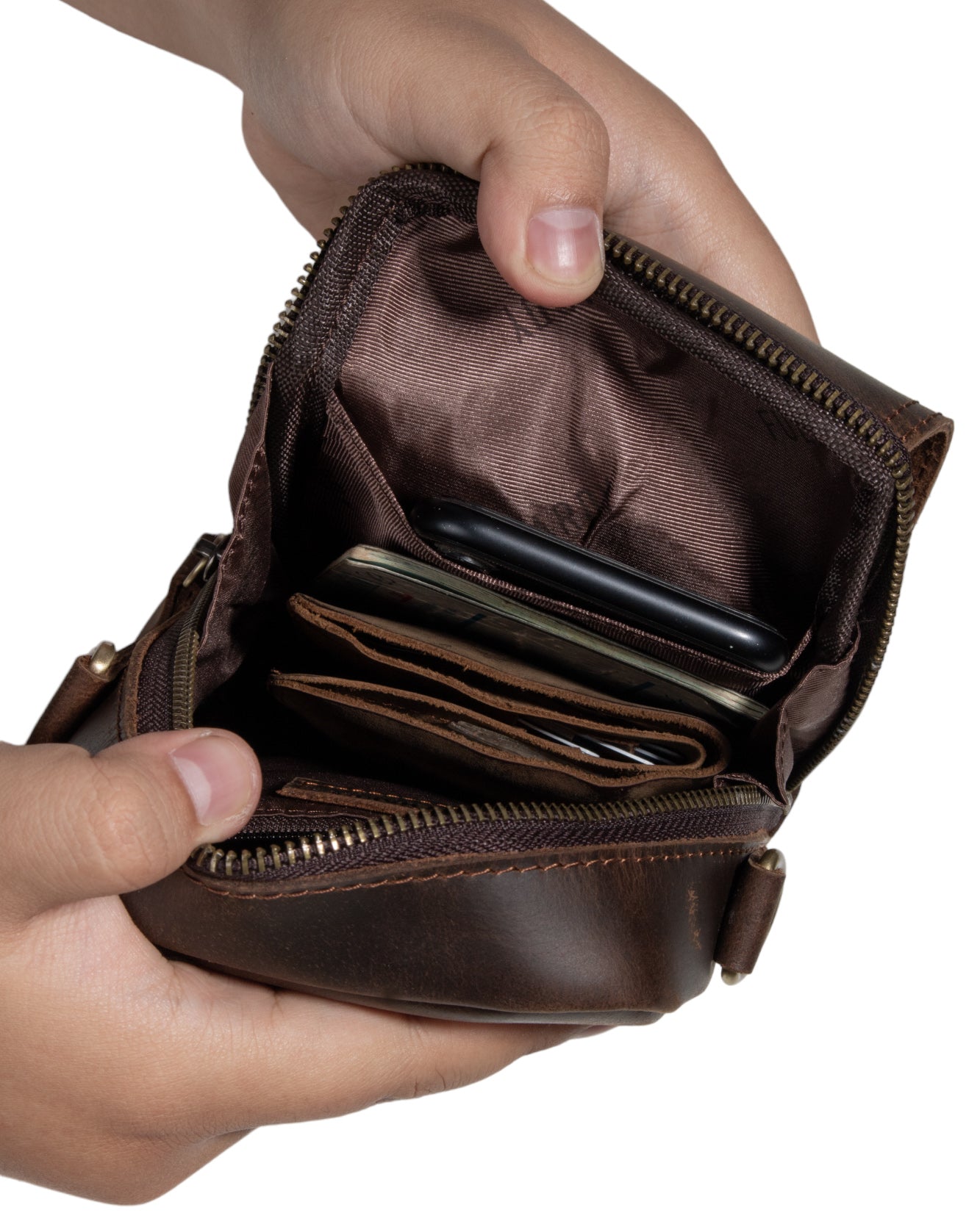 Tas selempang dengan desain modern dan stylish. Terbuat dari kulit sapi berkualitas yang memberikan tampilan elegan dan daya tahan yang lama. Warna coklat yang klasik dan mudah dipadukan dengan berbagai outfit. Cocok untuk kebutuhan sehari-hari, tidak terlalu besar namun cukup untuk membawa barang penting. Dengan desain yang stylish, tas ini bisa digunakan oleh pria maupun wanita, menjadikannya aksesori yang sempurna untuk melengkapi penampilan sehari-hari anda.
