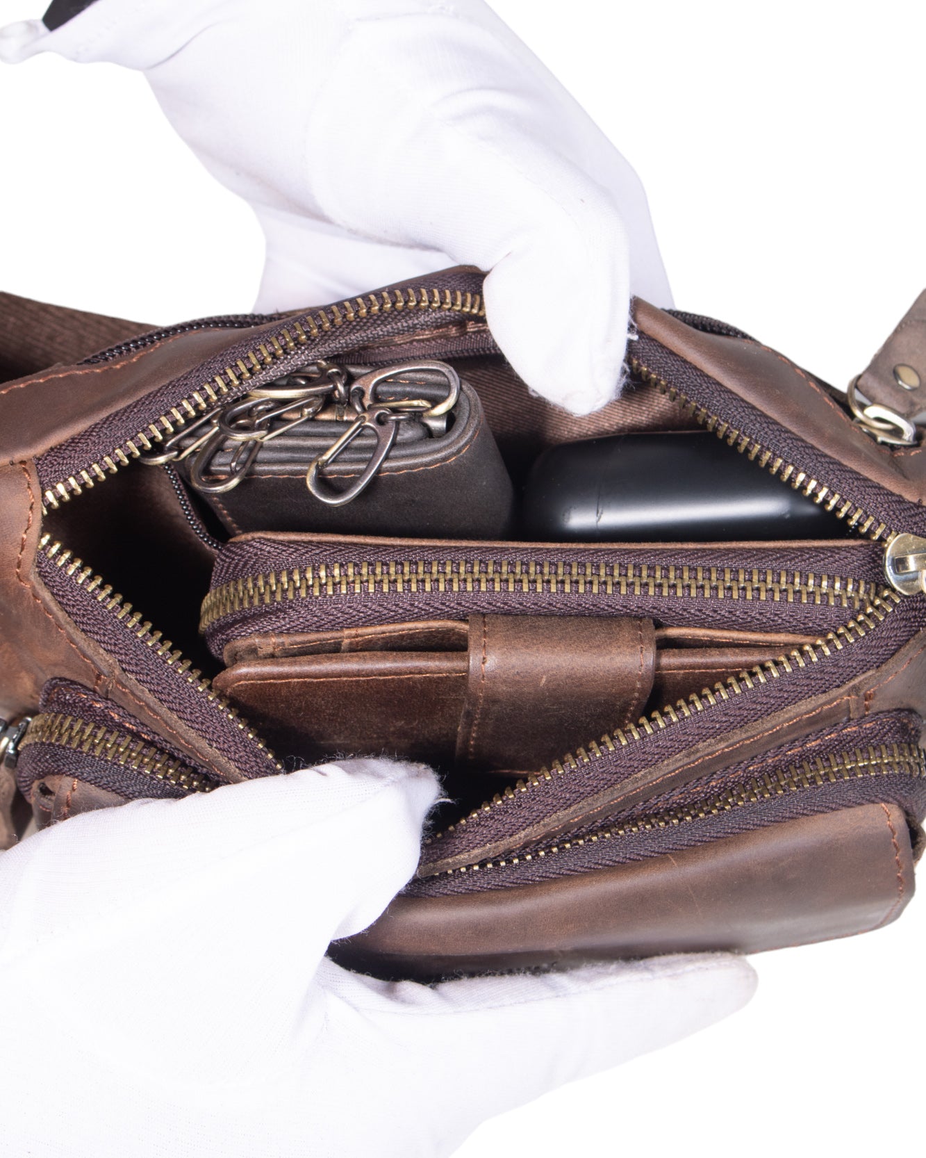 Tas selempang dengan desain modern dan stylish. Terbuat dari kulit sapi berkualitas yang memberikan tampilan elegan dan daya tahan yang lama. Warna coklat yang klasik dan mudah dipadukan dengan berbagai outfit. Cocok untuk kebutuhan sehari-hari, tidak terlalu besar namun cukup untuk membawa barang penting. Dengan desain yang stylish, tas ini bisa digunakan oleh pria maupun wanita, menjadikannya aksesori yang sempurna untuk melengkapi penampilan sehari-hari anda.
