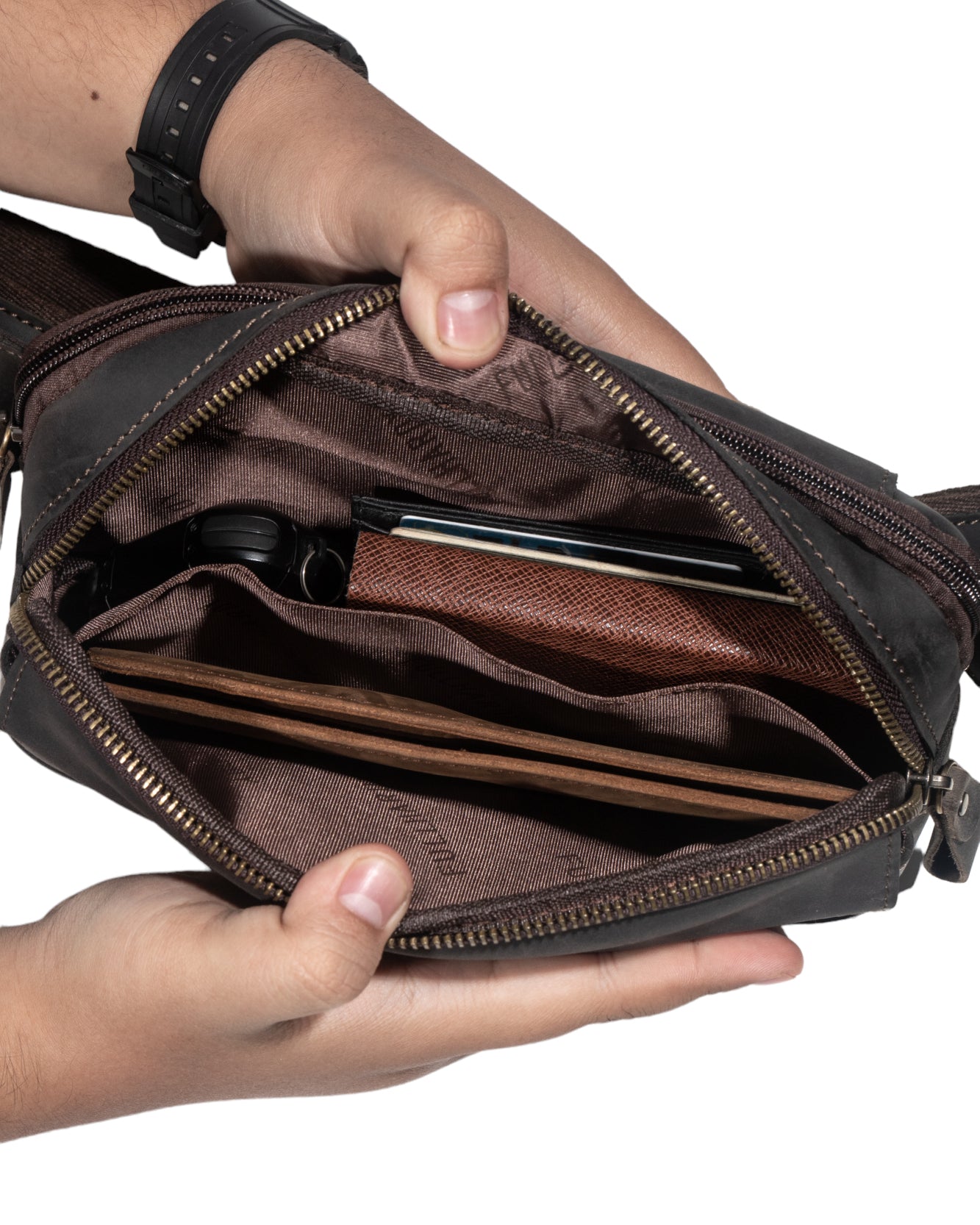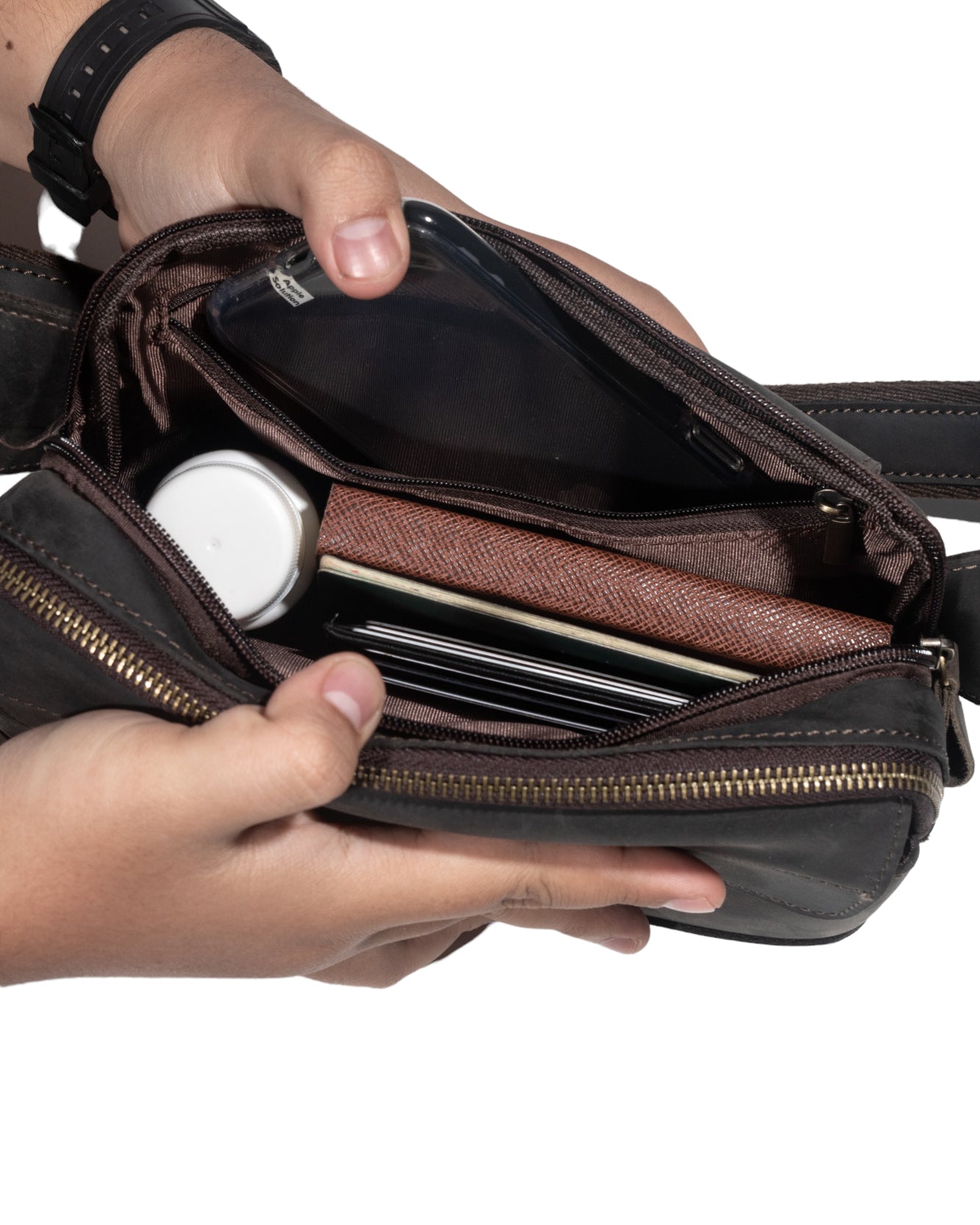 Tas selempang dengan desain modern dan stylish. Terbuat dari kulit sapi berkualitas yang memberikan tampilan elegan dan daya tahan yang lama. Warna coklat yang klasik dan mudah dipadukan dengan berbagai outfit. Cocok untuk kebutuhan sehari-hari, tidak terlalu besar namun cukup untuk membawa barang penting. Bagian depan memiliki 2 penutup magnetic snap dengan desain yang stylish, tas ini bisa digunakan oleh pria maupun wanita, menjadikannya aksesori yang sempurna untuk melengkapi penampilan sehari-hari anda.