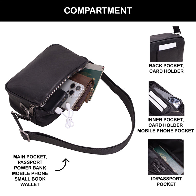 Tas selempang Fullhardy ini hadir dengan desain minimalis. Warna hitam klasik membuatnya mudah dipadukan dengan berbagai gaya busana. Dilengkapi dengan pengait buckle yang kokoh dan resleting YKK yang kuat dan halus untuk akses mudah. menjadi pilihan tepat bagi kamu yang mengutamakan gaya dan fungsi dalam satu produk.