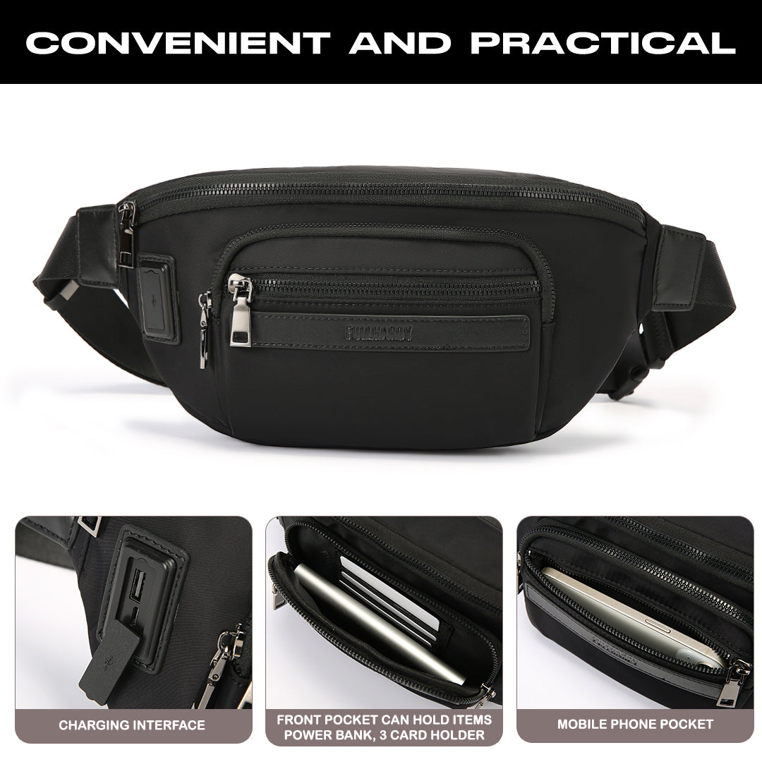 Tas multifungsi ini dirancang untuk memberikan kenyamanan dan kemudahan bagi pengguna yang aktif. Warna hitam elegan yang mudah dipadukan dengan berbagai gaya busana. Dengan desain yang stylish dan praktis, tas ini sangat cocok untuk berbagai kegiatan. Material waterproof berkualitas, sehingga menjaga barang di dalam tas tetap kering. Dilengkapi dengan port pengisian USB Type A dan Type C yang memudahkan pengguna untuk mengisi daya perangkat saat dalam perjalanan.