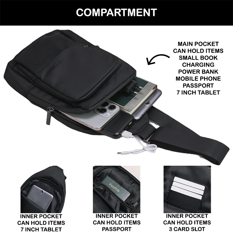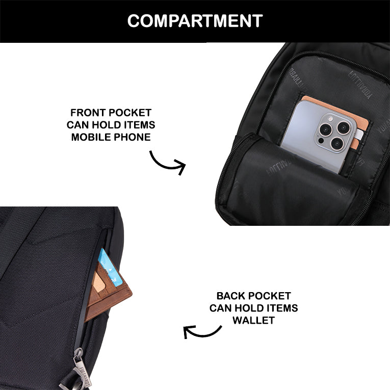 Exterior : 1 Zip Pocket, 1 Back Zip Pocket, Adjustable Shoulder Strap