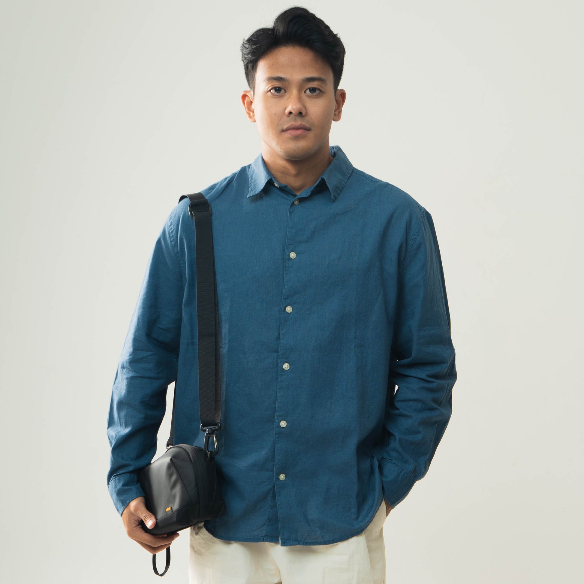 Desain minimalis maskulin dan fungsi maksimal, dengan material tahan air. Tidak memiliki ornamen berlebih, cocok untuk gaya kasual maupun semi-formal. Organizer multifungsi dengan kompartemen yang sangat terorganisir.
