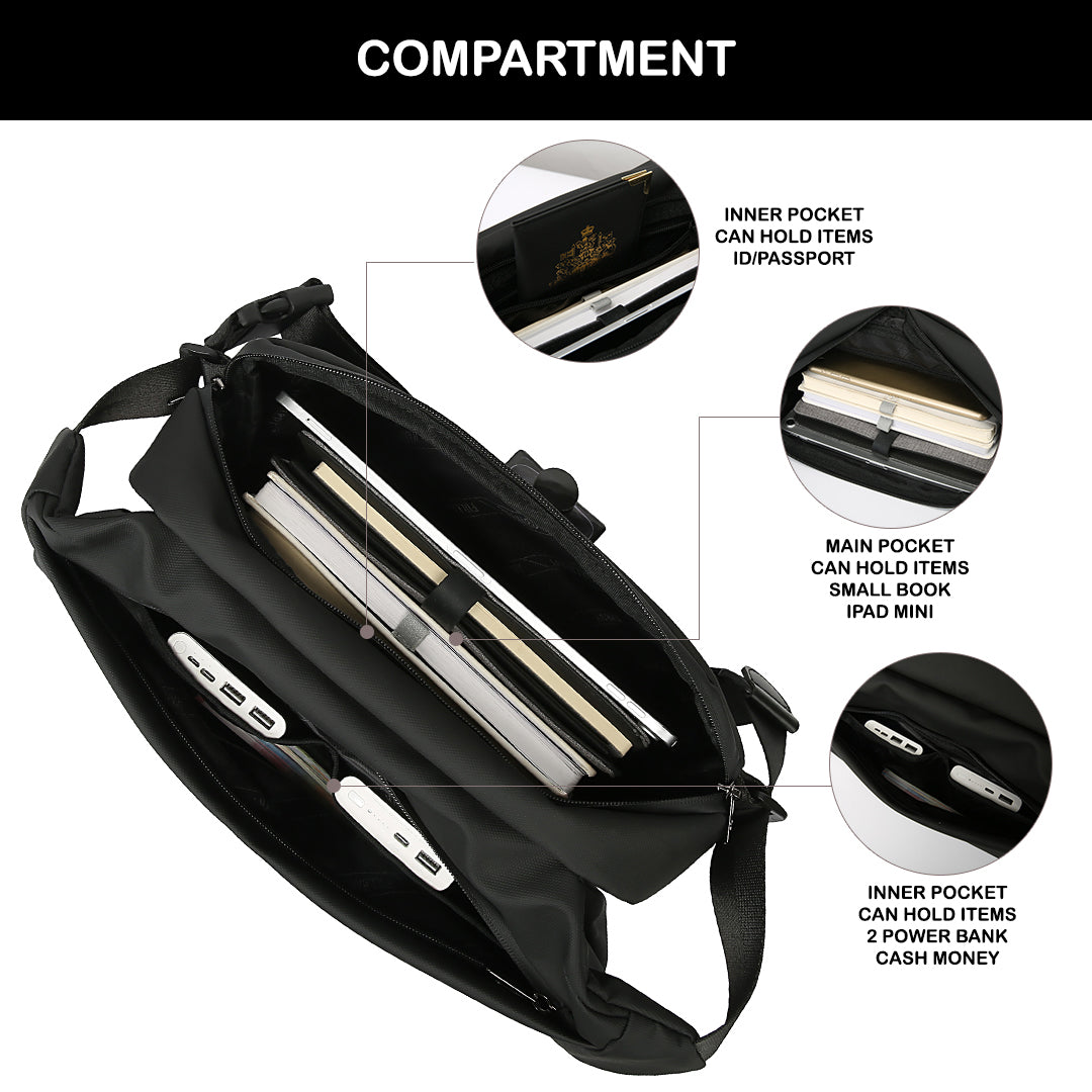 Dirancang untuk para pengguna yang aktif dan modern, tas ini menawarkan kenyamanan serta kepraktisan dalam setiap perjalanan. Material berkualitas, menggunakan bahan tahan air atau water-resistant, cocok untuk aktivitas luar ruangan. Menjaga tas ini tetap awet meski digunakan sehari-hari. Memiliki kantong di bagian samping, dapat menyimpan barang penting yang mudah diakses langsung. Desain ergonomis memudahkan pemakaian dan menjaga keseimbangan saat digunakan di bahu. Sangat praktis, dapat diandalkan dalam berbagai kesempatan.