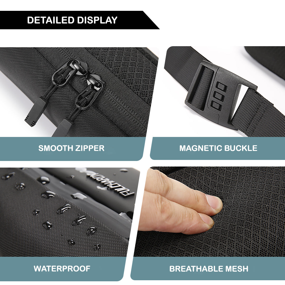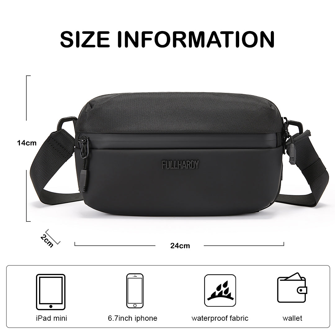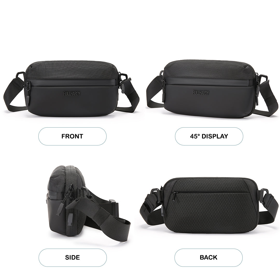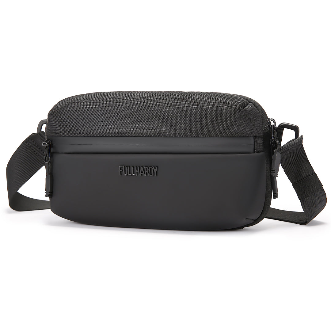 Berwarna hitam elegan dengan bentuk yang futuristik, terlihat kokoh dan stylish. menggunakan bahan tahan air atau water-resistant, cocok untuk aktivitas luar ruangan. Memiliki kompartemen utama yang cukup untuk membawa barang sehari-hari dan 1 kantong di bagian depan untuk akses mudah mengambil atau menyimpan barang. Secara keseluruhan, tas ini memancarkan kesan simpel, fungsional, dan berkelas cocok buat yang suka tampil keren tanpa usaha berlebihan.