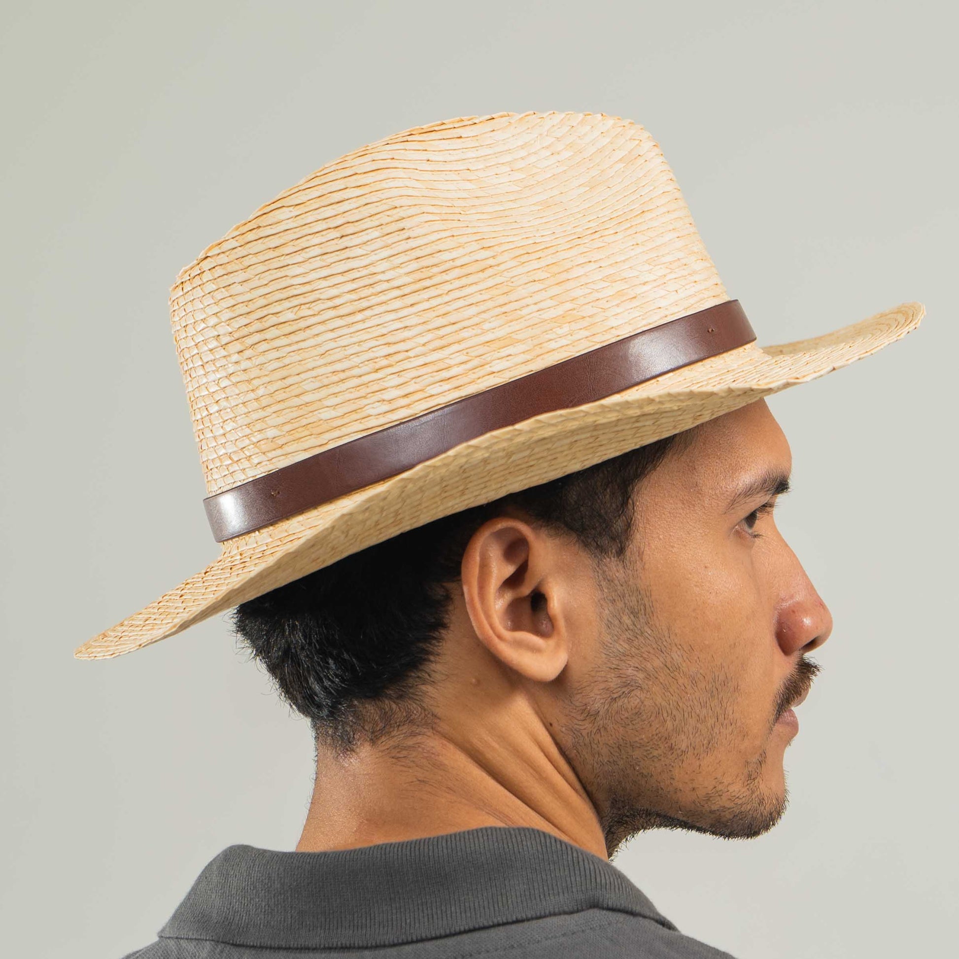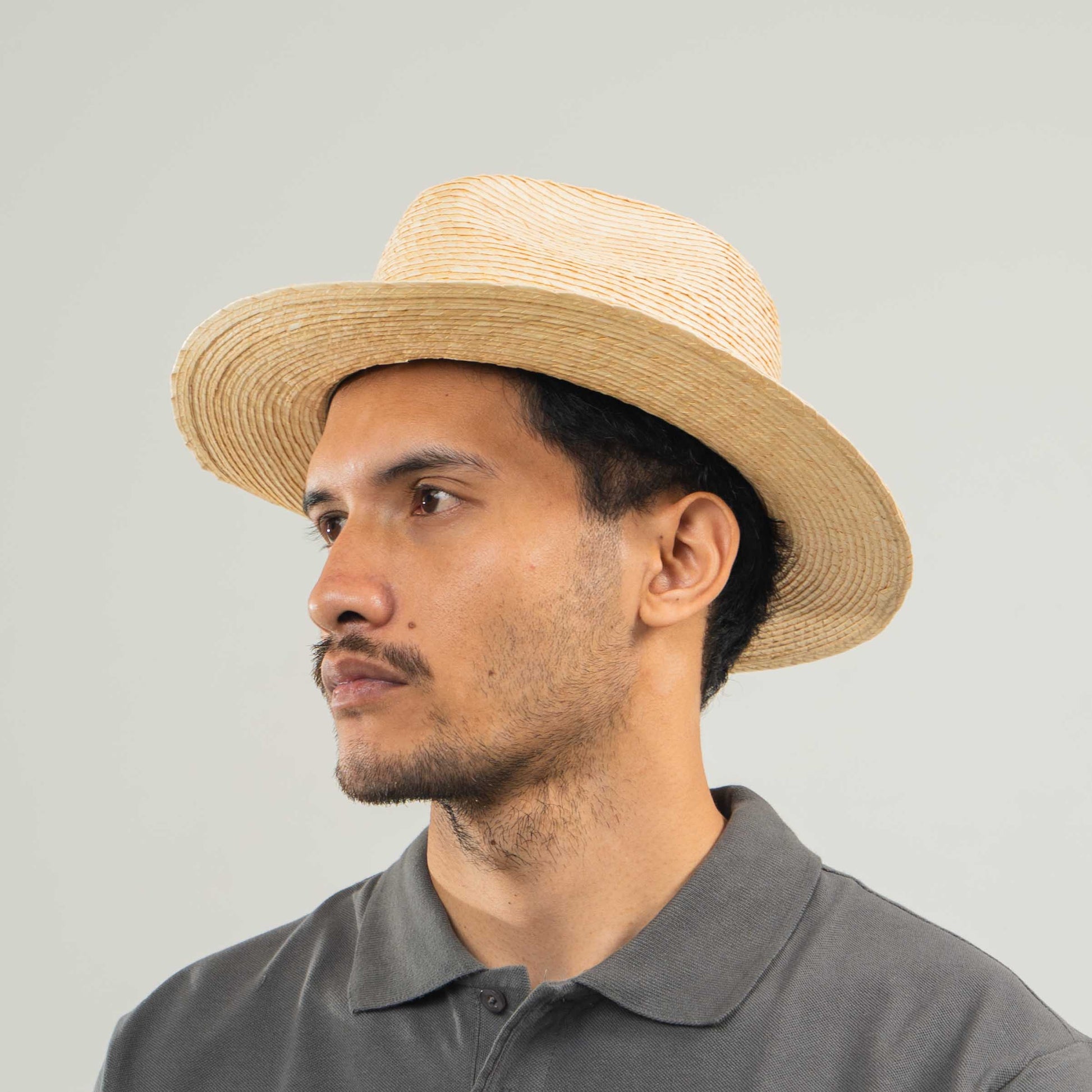 Bergaya klasik modern dengan desain bentuk yang unik dan terlihat stylish, adem dan ringan saat dipakai. Memiliki visor yang cukup lebar untuk memberikan perlindungan dari sinar matahari. Terbuat dari Palm straw, serat daun pohon palem yang kuat dan tahan lama. Topi ini merupakan pilihan yang tepat, dapat meningkatkan penampilan bagi mereka yang mencari keseimbangan antara fungsi, kenyamanan, dan gaya.