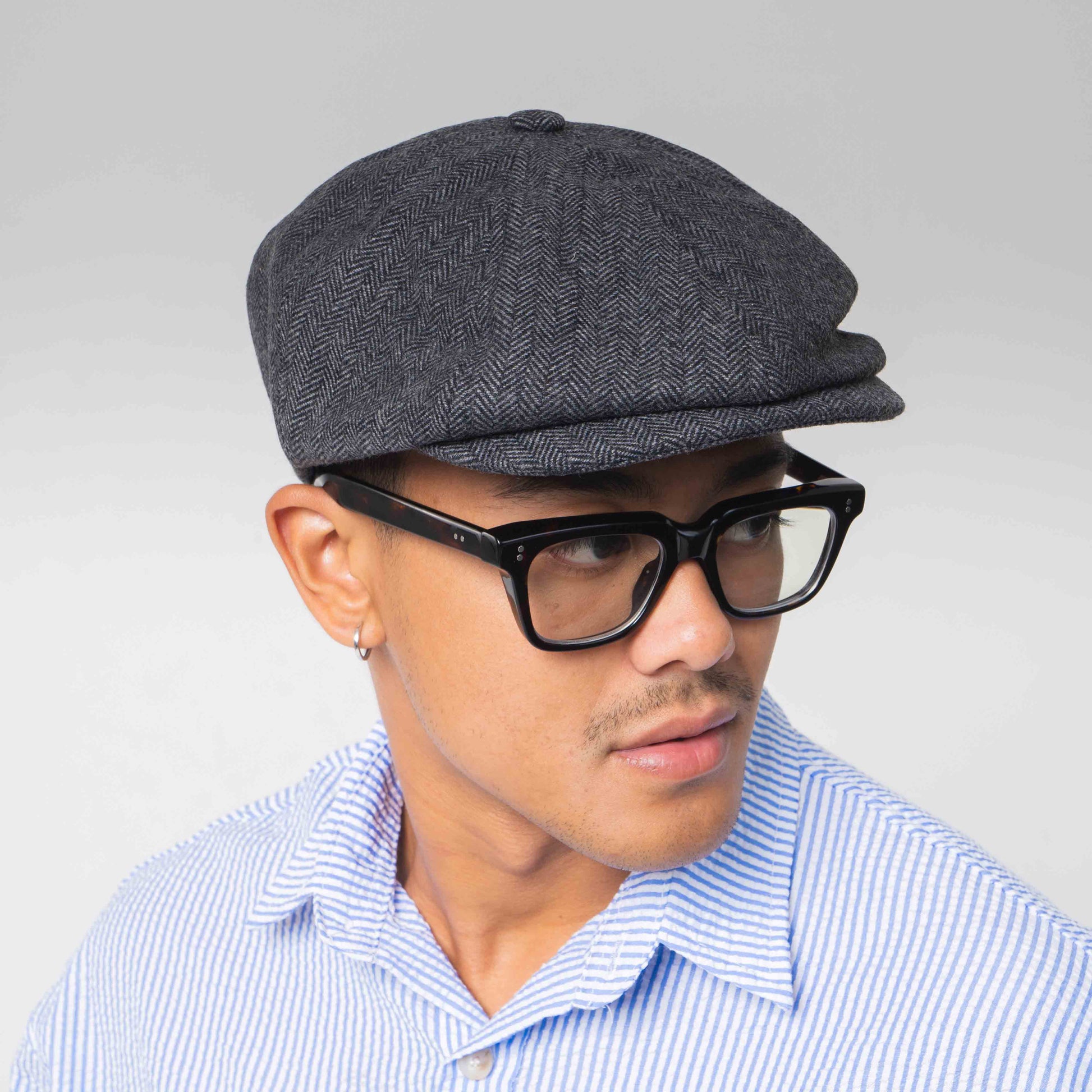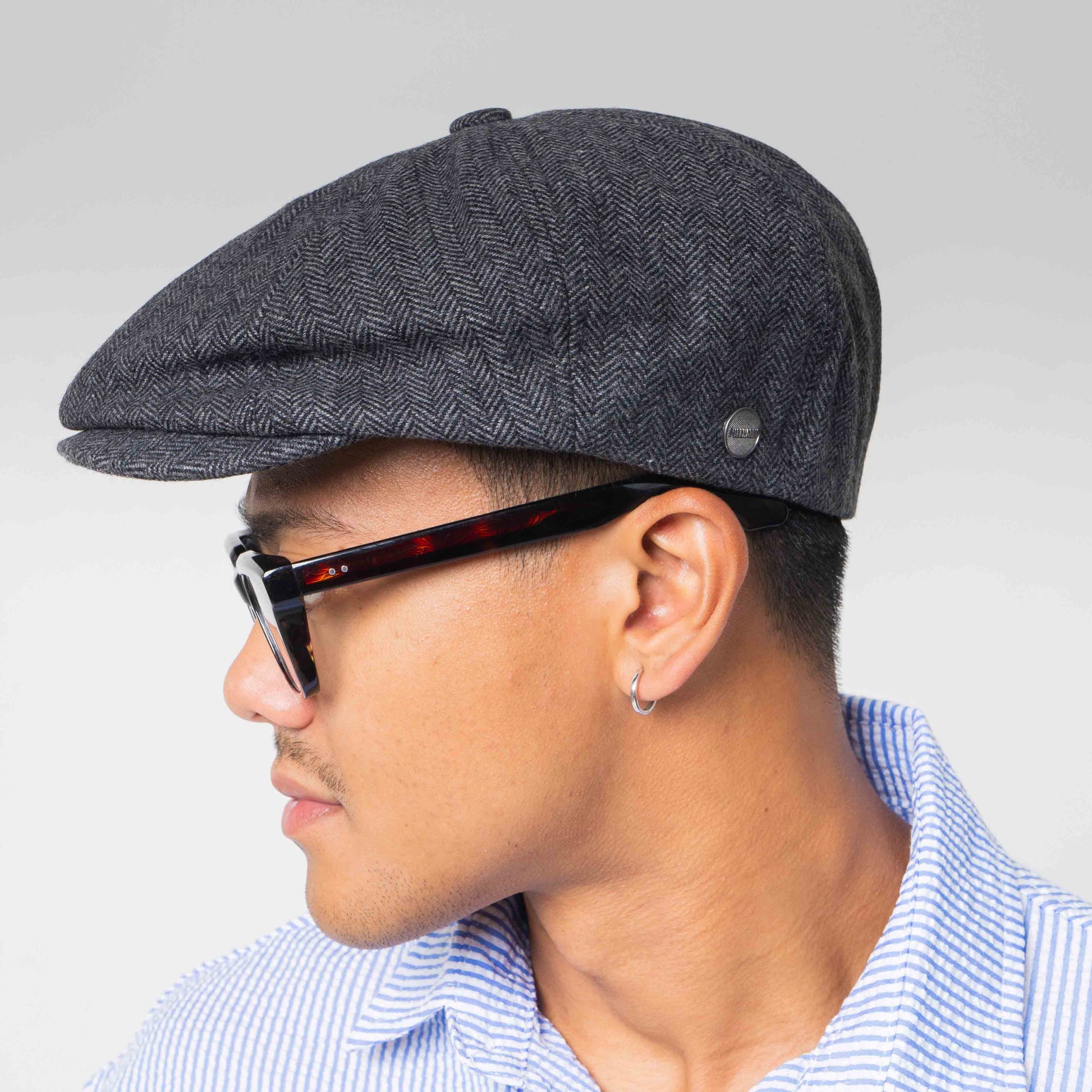 Topi berbentuk klasik ini sering dikenakan untuk gaya santai maupun formal, dikenal juga sebagai topi newsboy atau flat cap. Memiliki visor yang cukup untuk melindungi bagian area mata. Nyaman saat dikenakan. Dengan desainnya yang klasik dapat dipadukan dengan berbagai jenis pakaian, baik kasual maupun semi-formal.