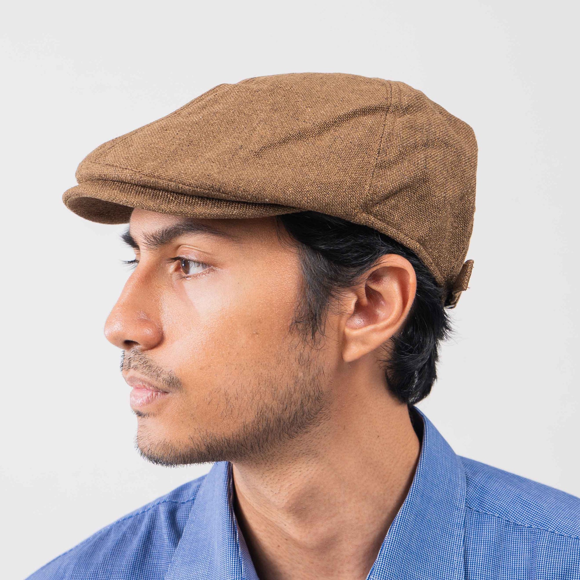 Topi berbentuk klasik ini sering dikenakan untuk gaya santai maupun formal, dikenal juga sebagai topi newsboy atau flat cap. Memiliki visor yang lebar, dilengkapi dengan tali pengikat di bagian belakang yang membantu penyesuaian ukuran, membuat topi ini lebih nyaman saat dikenakan. Dengan desainnya yang klasik dapat dipadukan dengan berbagai jenis pakaian, baik kasual maupun semi-formal.