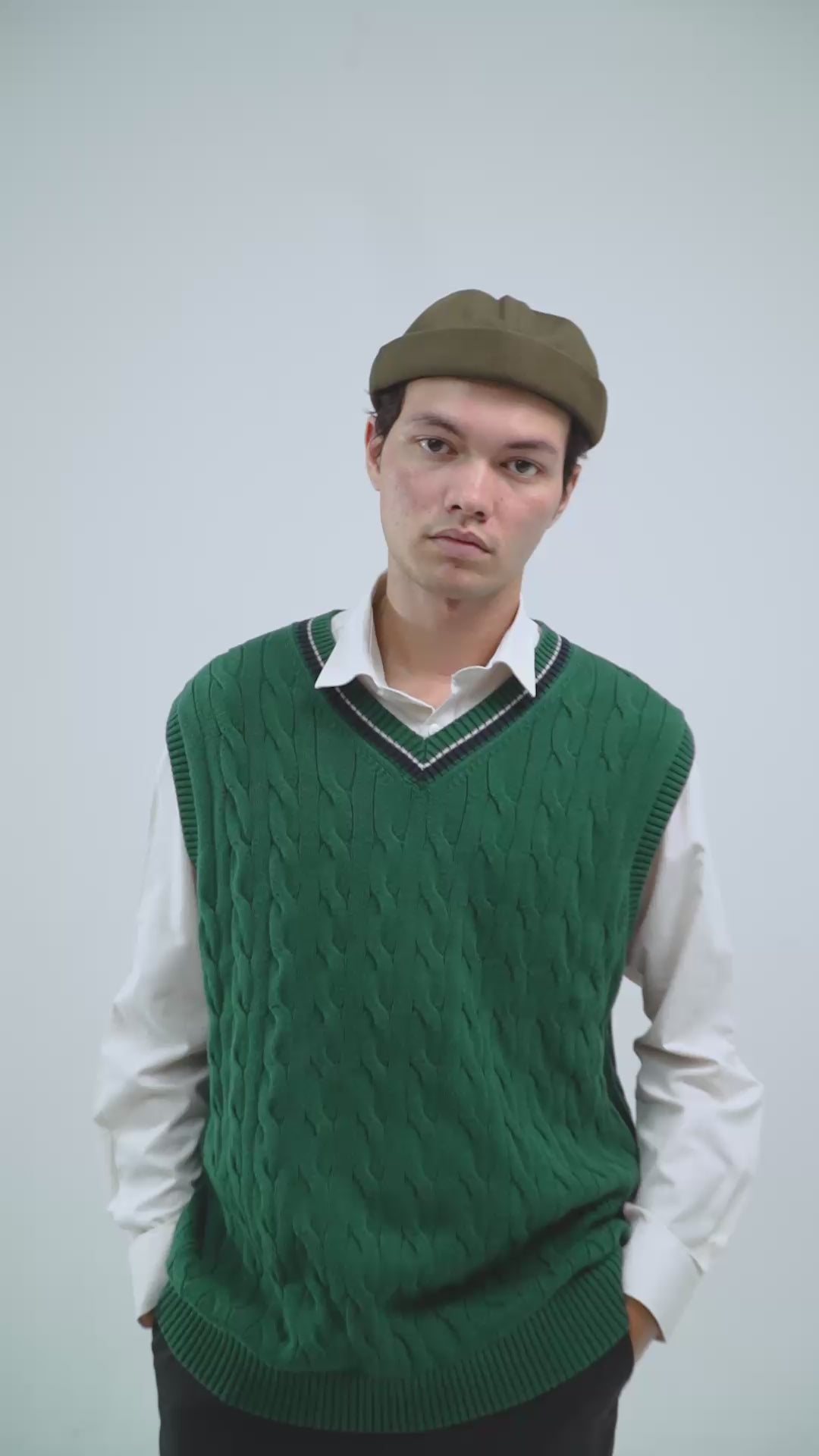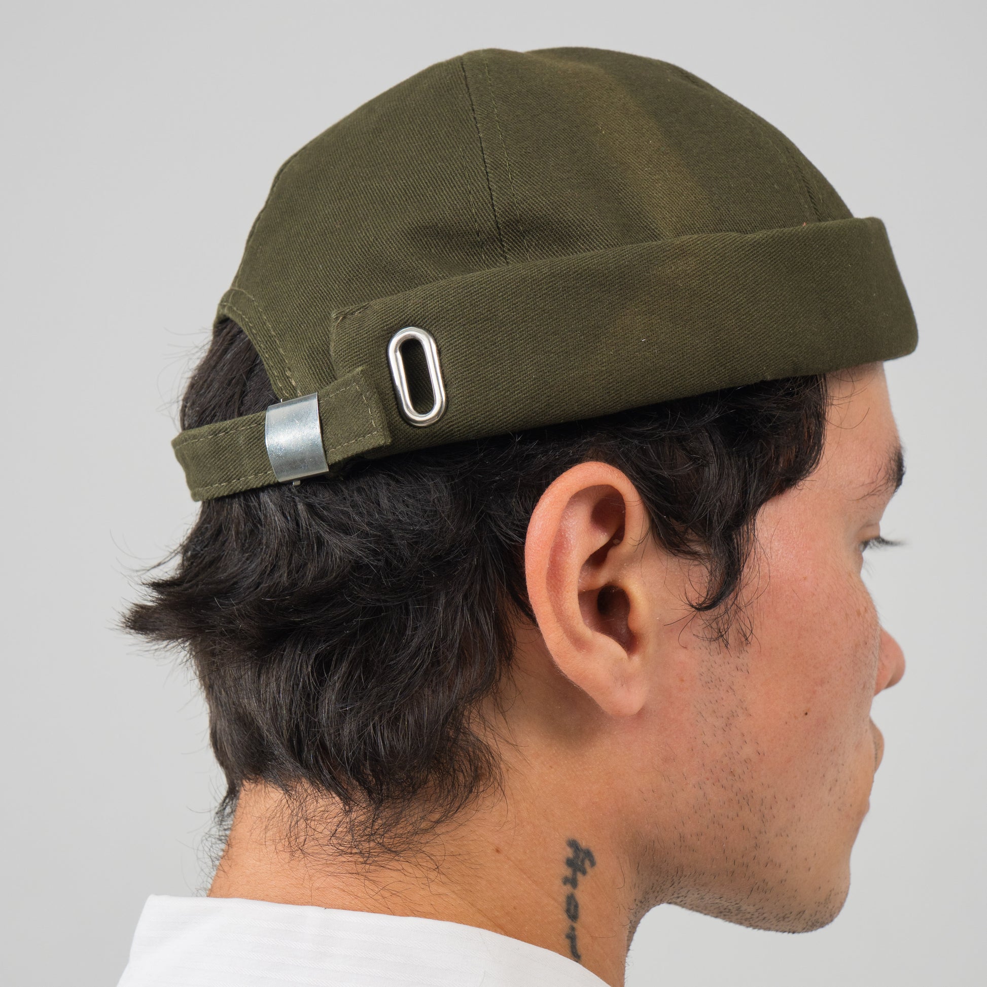 Bentuk topi memiliki desain yang sederhana dan modern, dengan bentuk bundar. Ketinggian topi terlihat cukup rendah dengan tepi yang membulat, memberikan kesan ramping dan stylish. Terdapat tali penyesuaian di bagian belakang, dilengkapi dengan gesper logam untuk memastikan topi nyaman saat dikenakan. Cocok digunakan dalam berbagai kesempatan, merupakan aksesoris yang praktis dan stylish, ideal untuk melengkapi penampilan sehari-hari.