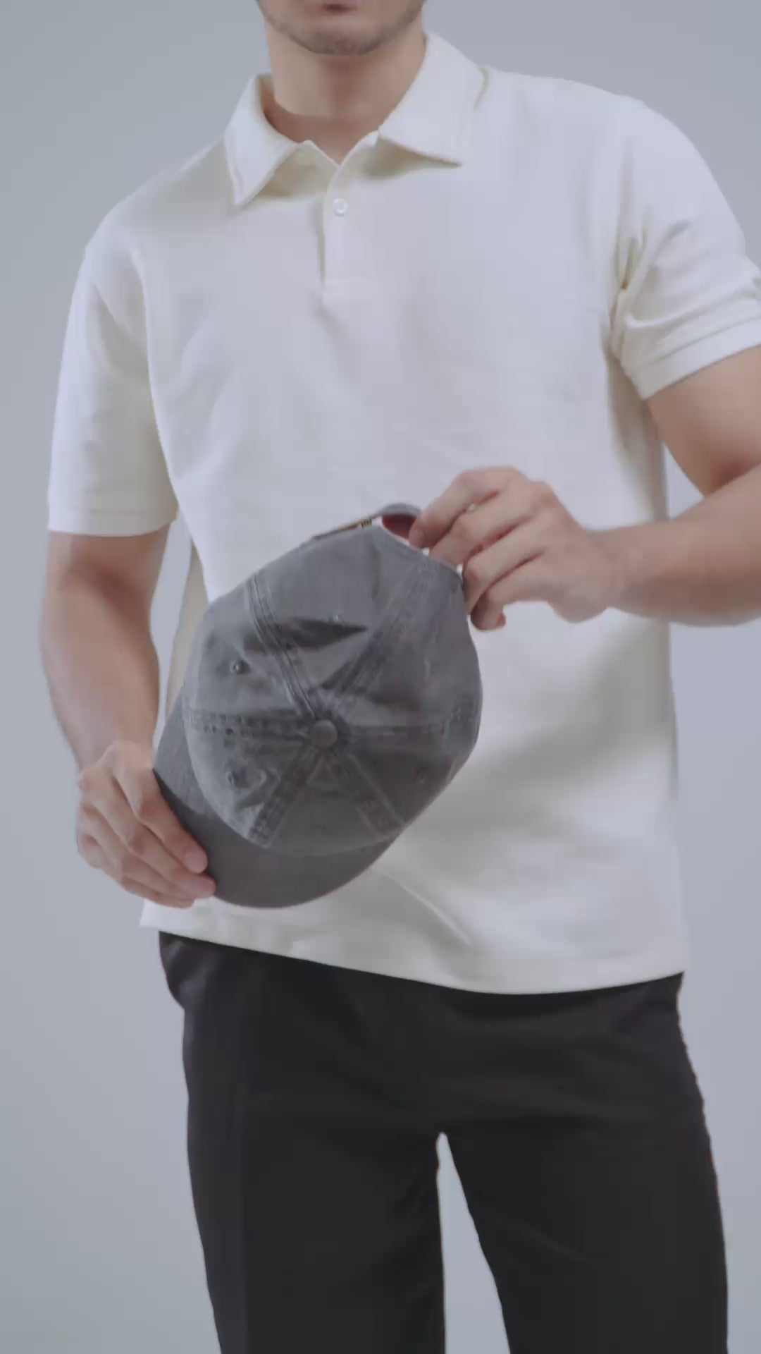 Topi ini memiliki desain klasik dengan siluet bentuk baseball cap. Bagian depan berbentuk melengkung dan memiliki visor panjang yang memberikan perlindungan dari sinar matahari. Terdapat lubang ventilasi di semua sisi untuk sirkulasi udara, membuatnya nyaman dipakai dalam waktu lama. Topi ini adalah pilihan yang tepat untuk mereka yang mencari aksesori yang praktis dan fashionable.